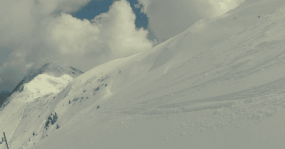 Et surtout là où c'était à l'abris du vent des accumulations (>2500m) en plaques dures, j'en ai fait péter 3 (BLAMMMM!! un bruit de fou, rien et on voit une ligne de cassure de 30m de long... Non parti heureusement) donc gaffe aux prochaines chutes c'est du roulement à billes en dessous. C'est parti auparavant sur 200m de haut et 100 de large sous le Mallory à l'Aiguille, jusqu'à la vieille neige restant de l'été dernier!