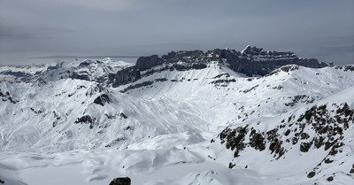 Sinon au Col des Aravis, entre 10 et 50cms selon l'endroit, une moyenne à 20-30cm, poudreuse en train de s'humidifier à l'heure de midi. Beaucoup de nébulosité qui m'ont empêché de monter plus haut.