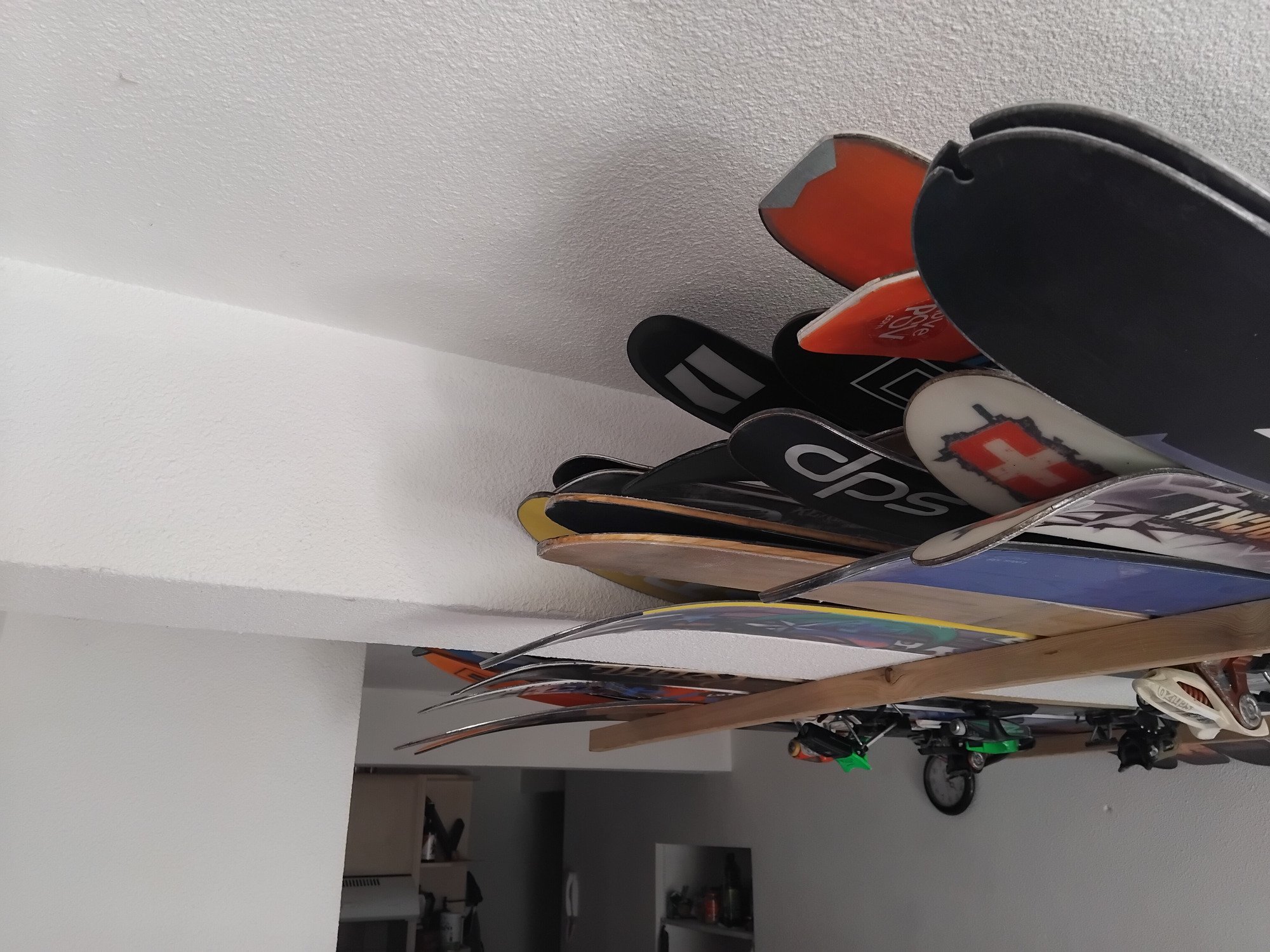 Est-ce qu’il y a d’autres maniaques du rangement qui aiment bien accrocher leur skis au mur ici ??