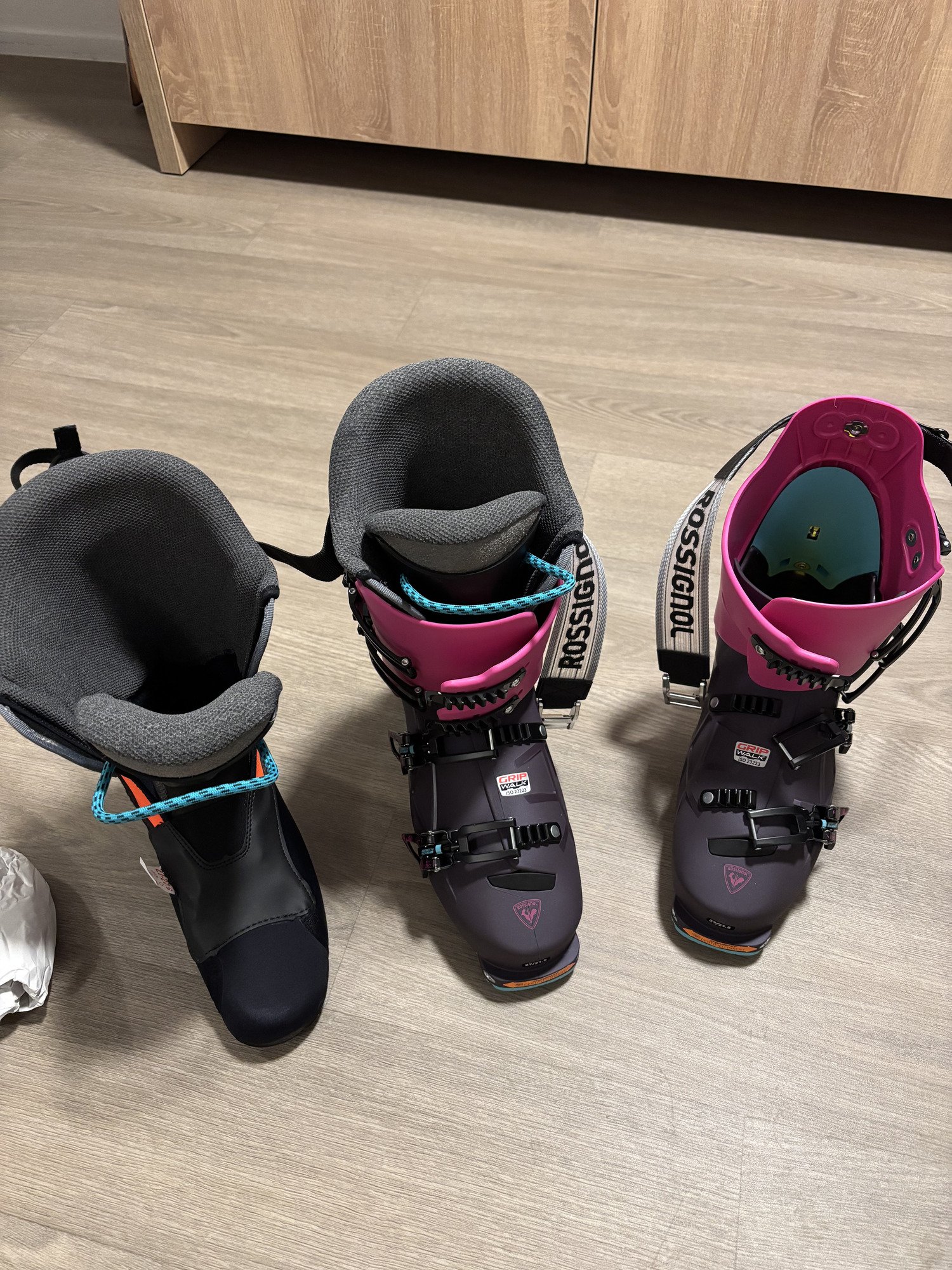 Au niveau confort, j'ai une coque en 27-27,5, je chausse du 42, ça va très bien. Je les ai gardées au pied une petite heure, en restant majoritairement assis. (il parait que c'est pas bien de se promener sur le parquet avec les chaussures de ski... franchement, je ne vois pas pourquoi