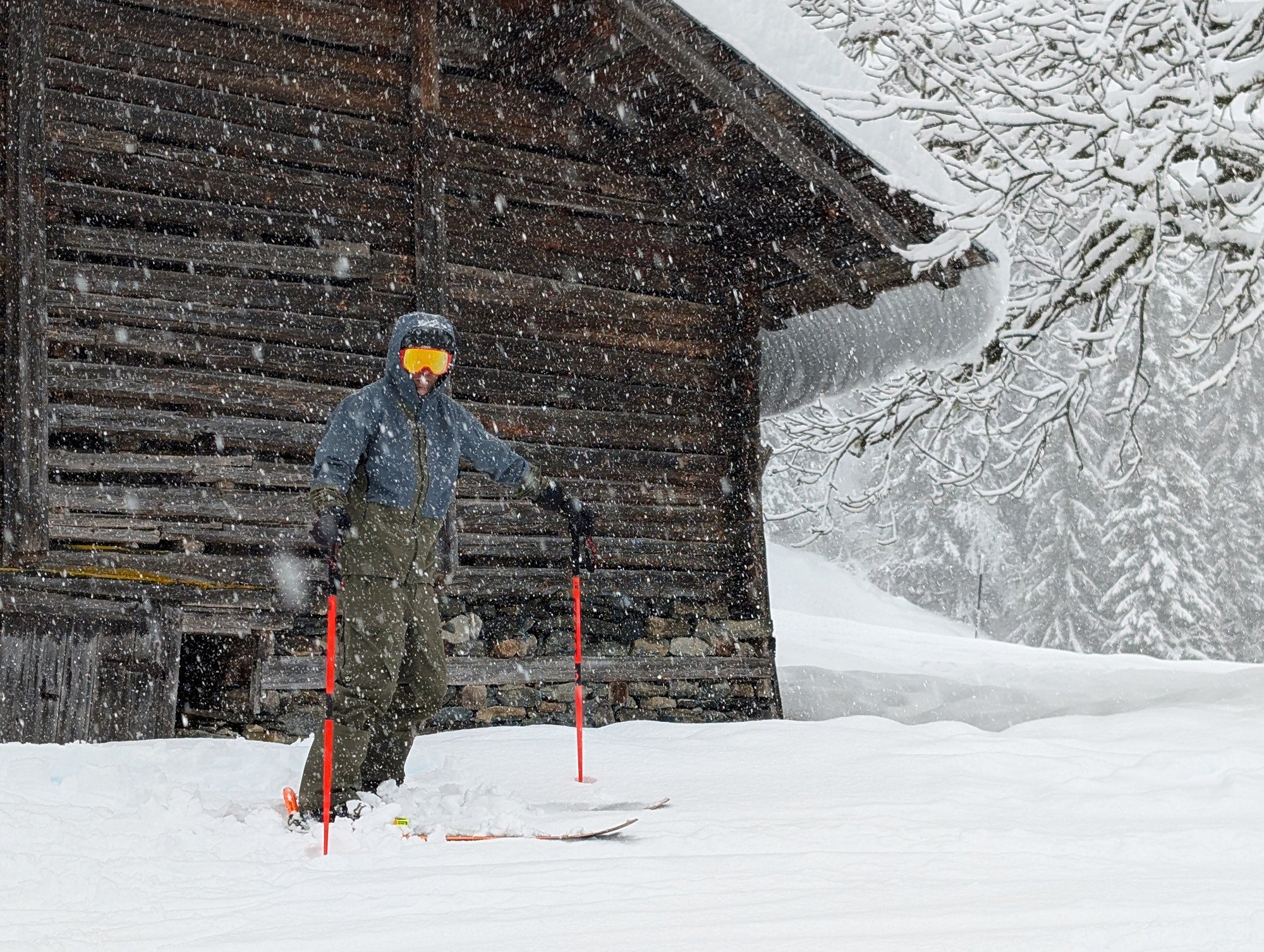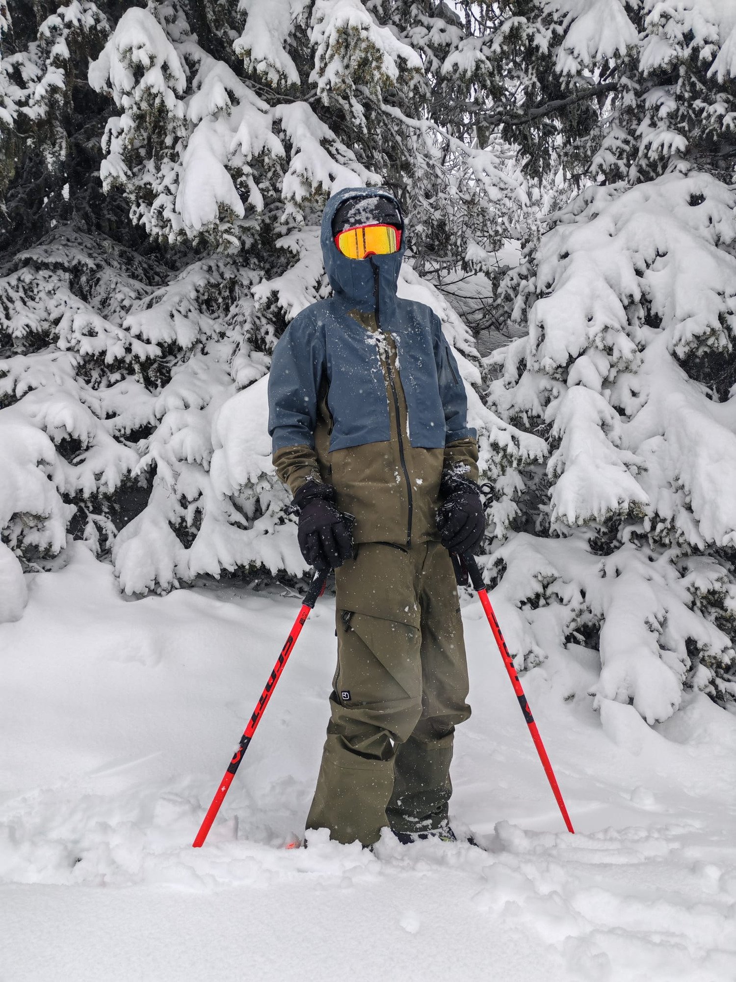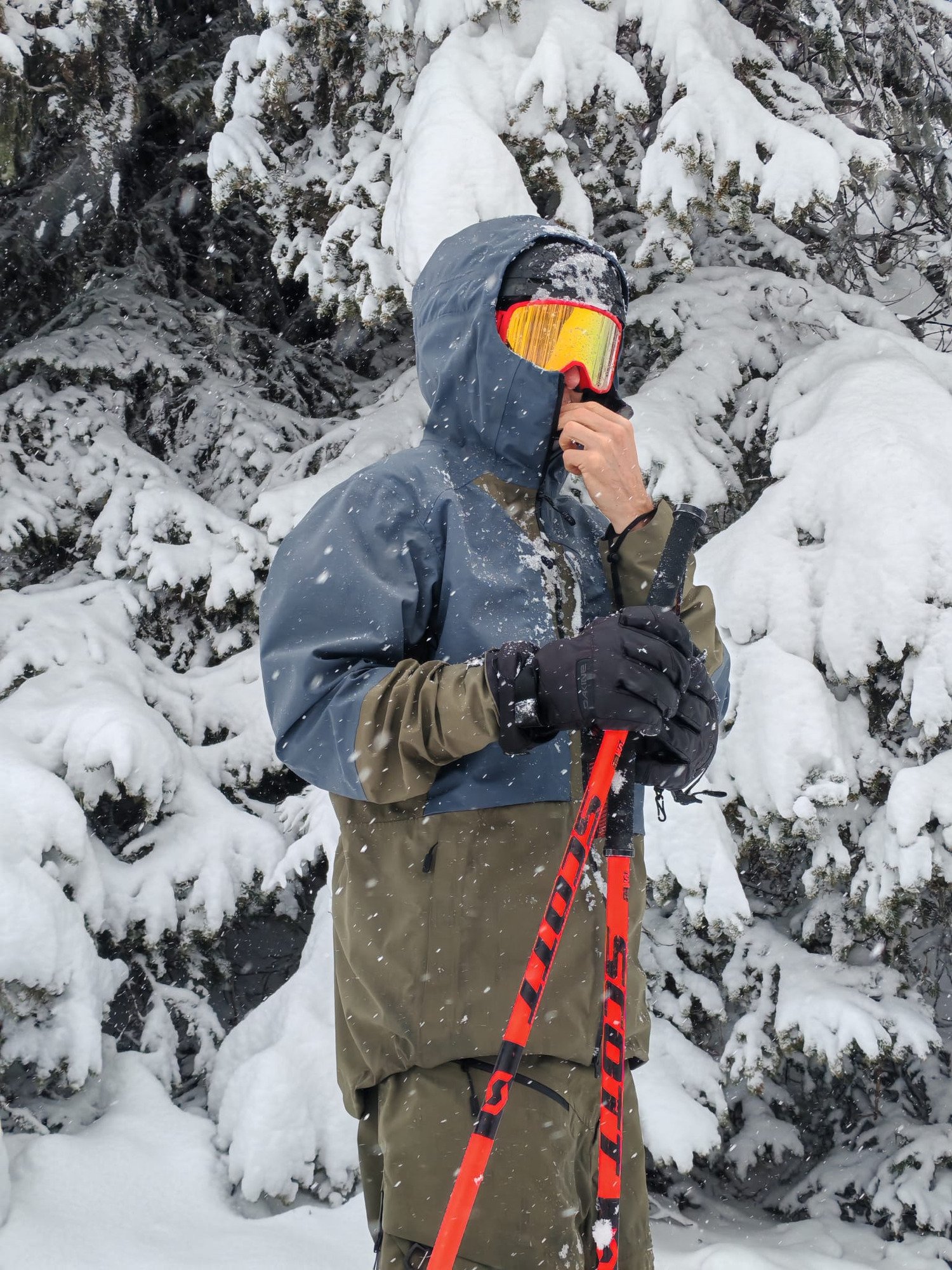 La veste propose de la place on se sent bien libre, il y a bien entendu une jupe par neige. Par contre pas de manchons aux poignets et ça c'est vraiment dommage. Par une journée comme aujourd'hui c'est un petit détail qui fait la différence. Même si on a fait du ski tranquille, petit bord de pistes avec une neige bien humide qui colle, ca protège bien les manchons. Et si aussi il n'y a pas de petit chiffons pour essuyer son masque (j'avais cela sur mes dernières veste ) il faudra que je m'en garde un dans la poche poitrine.