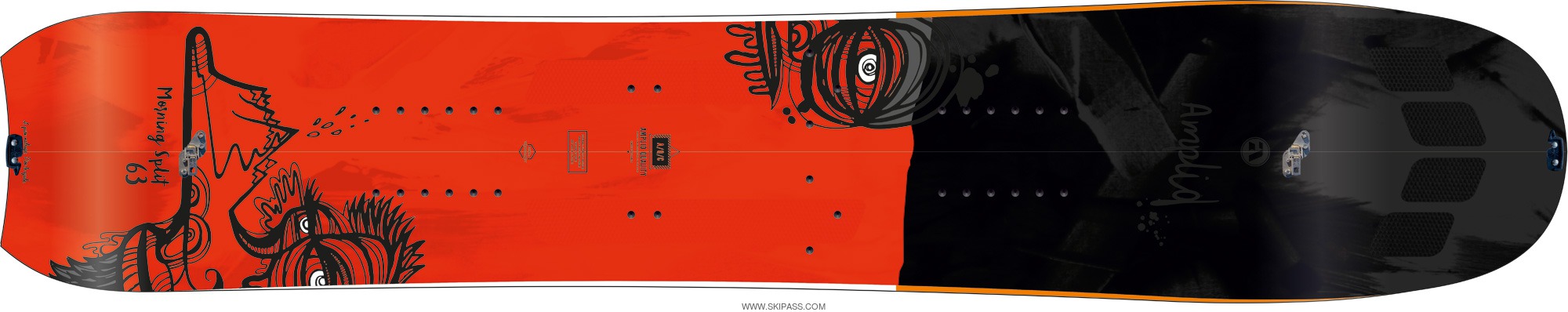 Qu'il sagisse de planifier de profondes expéditions en backcountry, ou juste de vouloir étendre votre quête de poudreuse dans les zones accessibles par les remontées mécaniques, tant que la neige fraiche sera votre motivation pour voyager plus loin sous votre propre vague de poudreuse, la Mornnig Split est la board qu'il vous faut. Ultra portante en neige profonde, le shape voluptueux de la Morning Split, qui compacte la surface de flottaison d'une baord traditionnelle 12cm plus longue, et son nose au rocker doux et progressif permettent un style de ride sur l'avant agressif dans la pow, tel qu'il ne serait même pas envisageable avec des boards aux shapes plus conventionnels. Malgré son énorme empreinte, la Morning Split réussit à contenir son poids à peine au-dessus des 3kg. Avec sa légèreté et son long nose elliptique la Morning Split casse les traces sans efforts. Le cambre sous le pied arrière ne fait pas que rajouter du pop et de la puissance pour les slash, il aide aussi à la traction des peaux dans les terrains pentus.