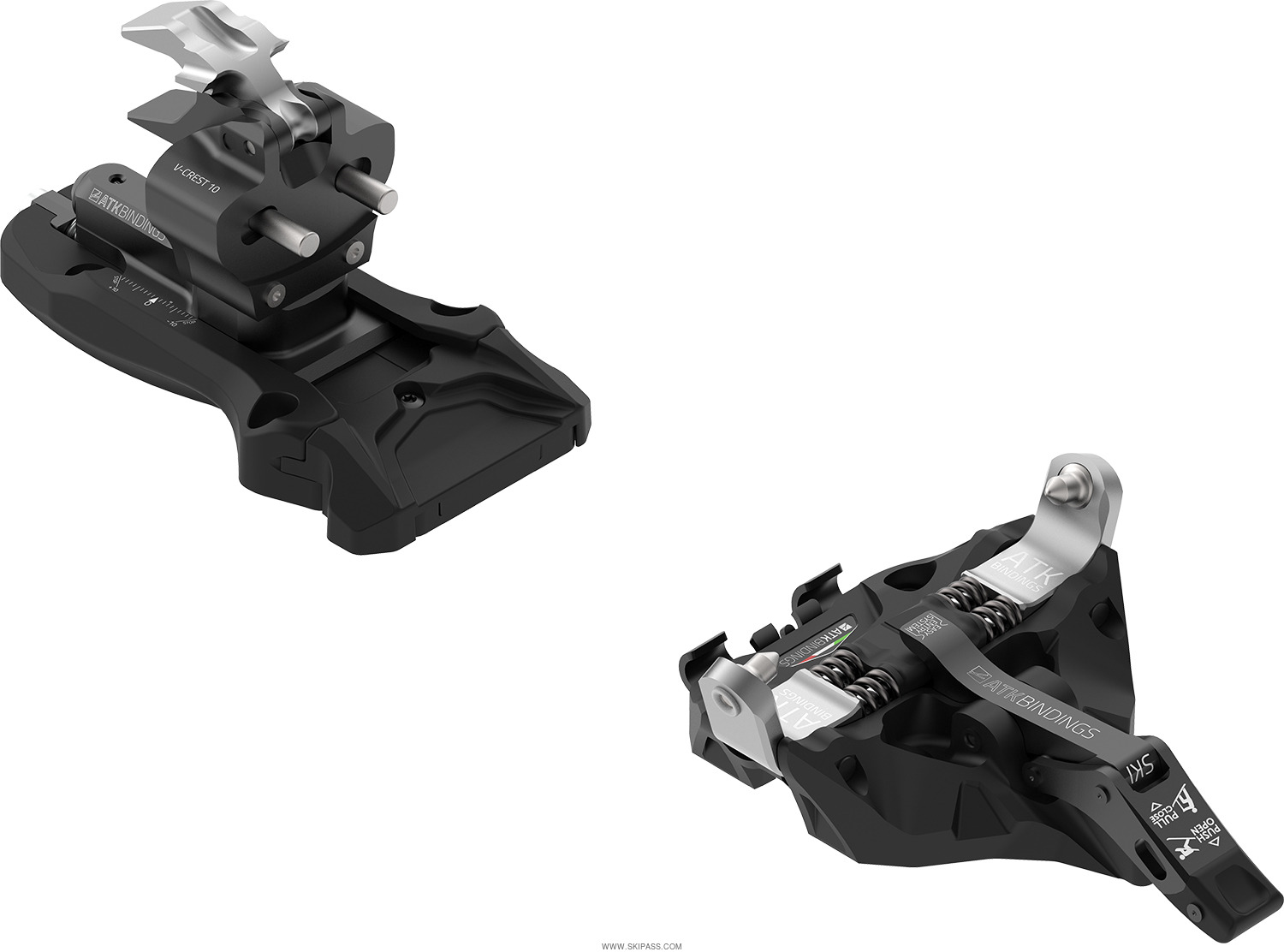 Conçue pour assurer une transmission parfaite de la puissance, la butée avant dela V-CREST 10 LT est également dotée du système Snowpack Proof, qui éliminetout risque d’accumulation de neige sous le mécanisme. La talonnière est minima-liste tout en gardant une rigidité en torsion précise grâce au CAM Release System.Des performances compétitives à un prix gagnant.