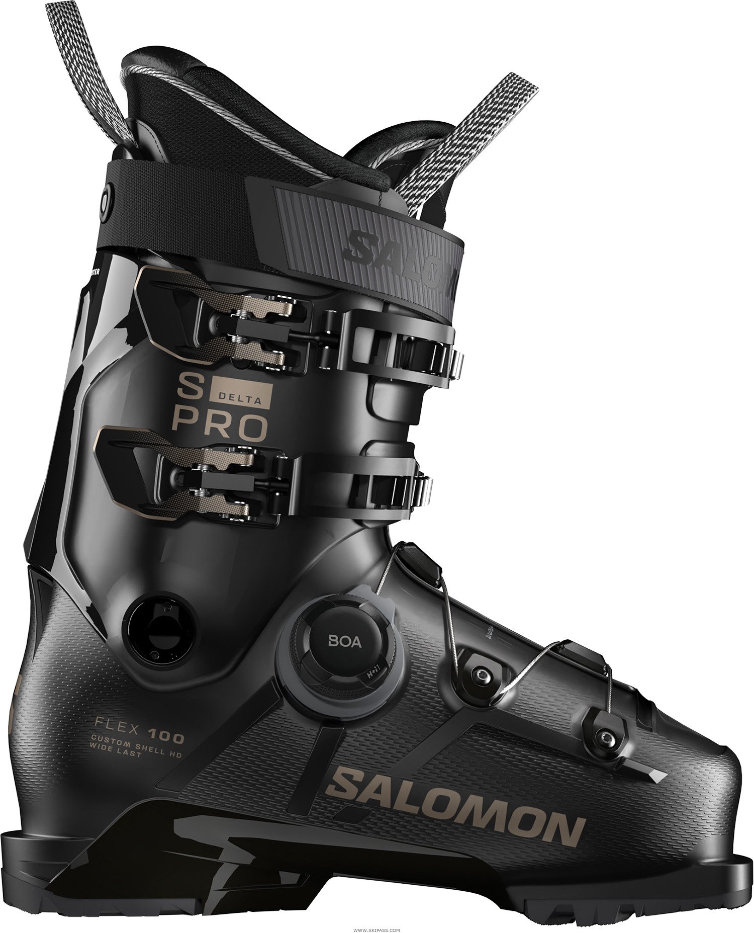 Salomon's S/Pro Delta BOA® 100 combines a forgiving flex with the micro-adjustable BOA® Fit System on a 102mm last, offering intermediate skiers an ideal blend of control and comfort. The three-position Calf Adjuster allows for a customized fit across various calf shapes, making them a versatile option for skiers seeking responsive performance.