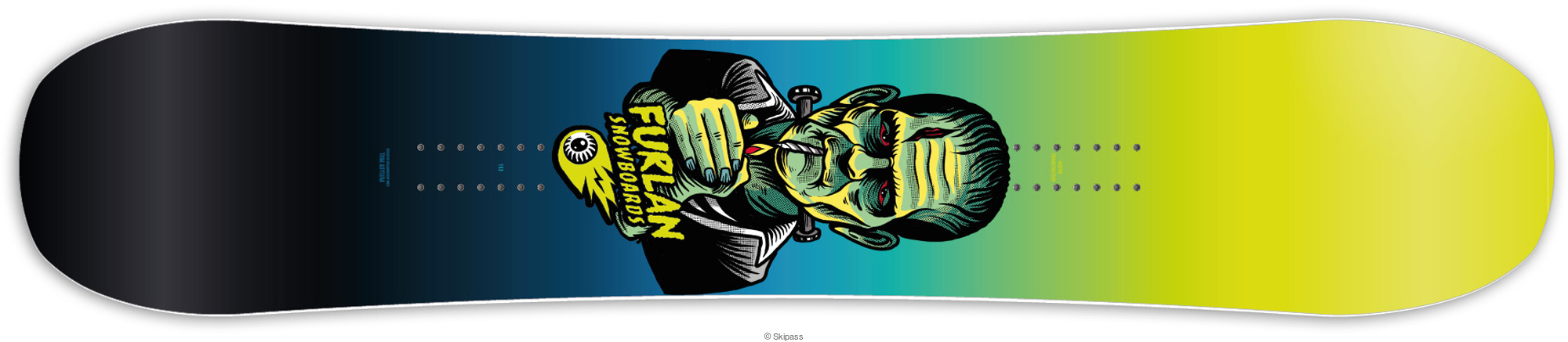 Noyau peuplier/frêne, semelle ptex4000, chants 10°/45°, "Fried Egg Camber" mixe de cambre très inversé et classique avec effet rocker uniquement en poud ...