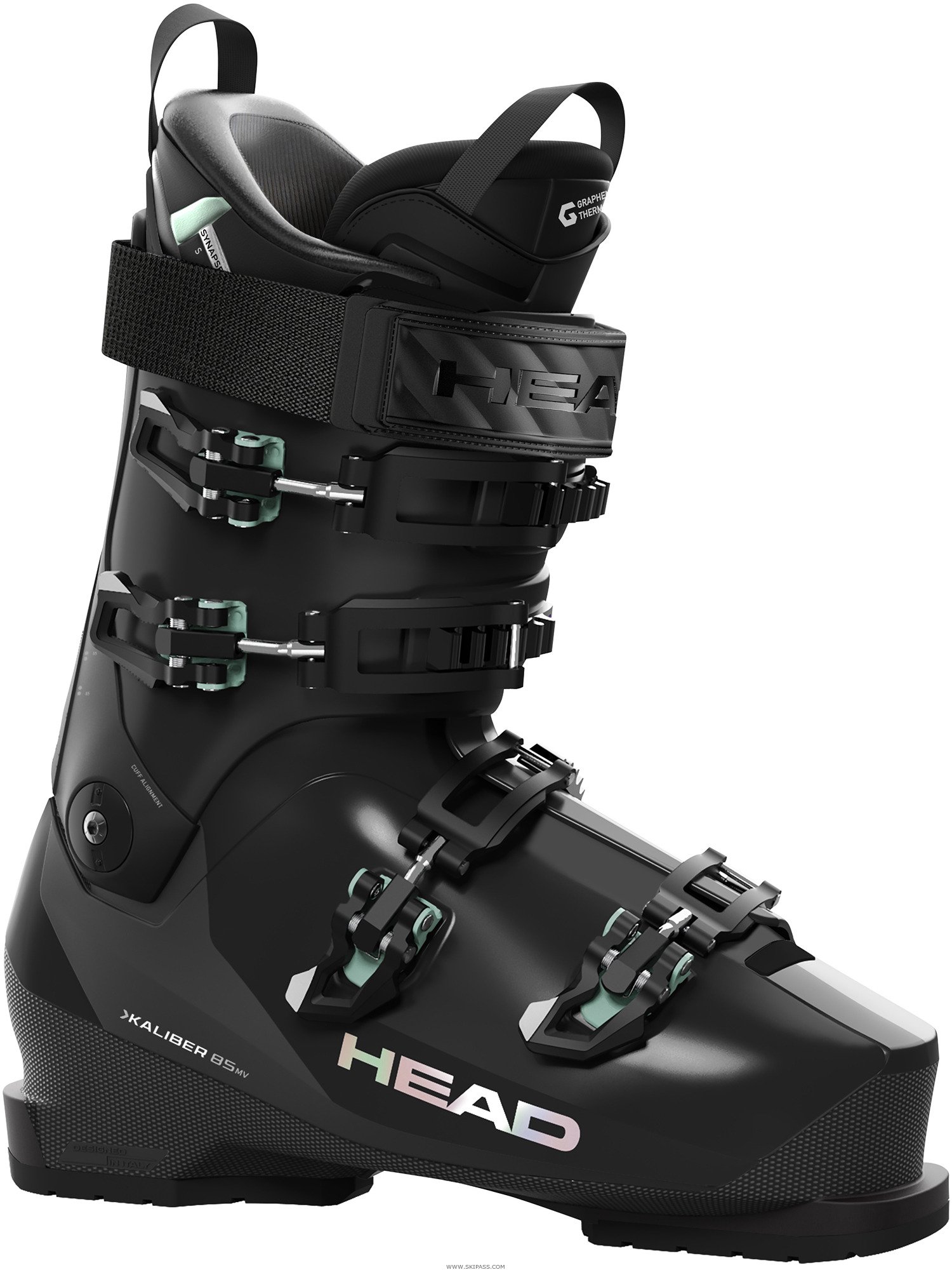 La Kaliber 85 W MV peut aider les skieuses à exprimer tout leur potentiel à ski grâce à un last redessiné qui allie plus d'espace au niveau des orteils et une enveloppe plus ajustée du collier autour du bas de jambe. Le chausson Synapse S est plus fin et plus anatomique pour améliorer encore davantage le chaussant avec un meilleur maintien du pied. L'ajout de graphène tissé dans le chausson assure la régulation thermique. La coque personnalisable Form Fit de HEAD permet d'affiner le chaussant avec des réglages faciles.