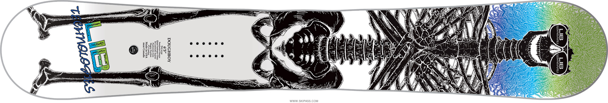 Le Dough Boy a été créé à la fin des années 80 par Mike Olson, à une époque où le snowboard évoluait très rapidement. Personne ne comprenait vraiment ce qui se passait, à l'exception de Jamie Lynn. Le concept de Mike était le suivant : une planche au cambre plus long sur un stance de largeur fixe offrirait une glisse plus souple sur les terrains difficiles, flotterait incroyablement sur la poudreuse et les grands nose et tail traceraient de magnifiques courbes sur la neige tassée ...