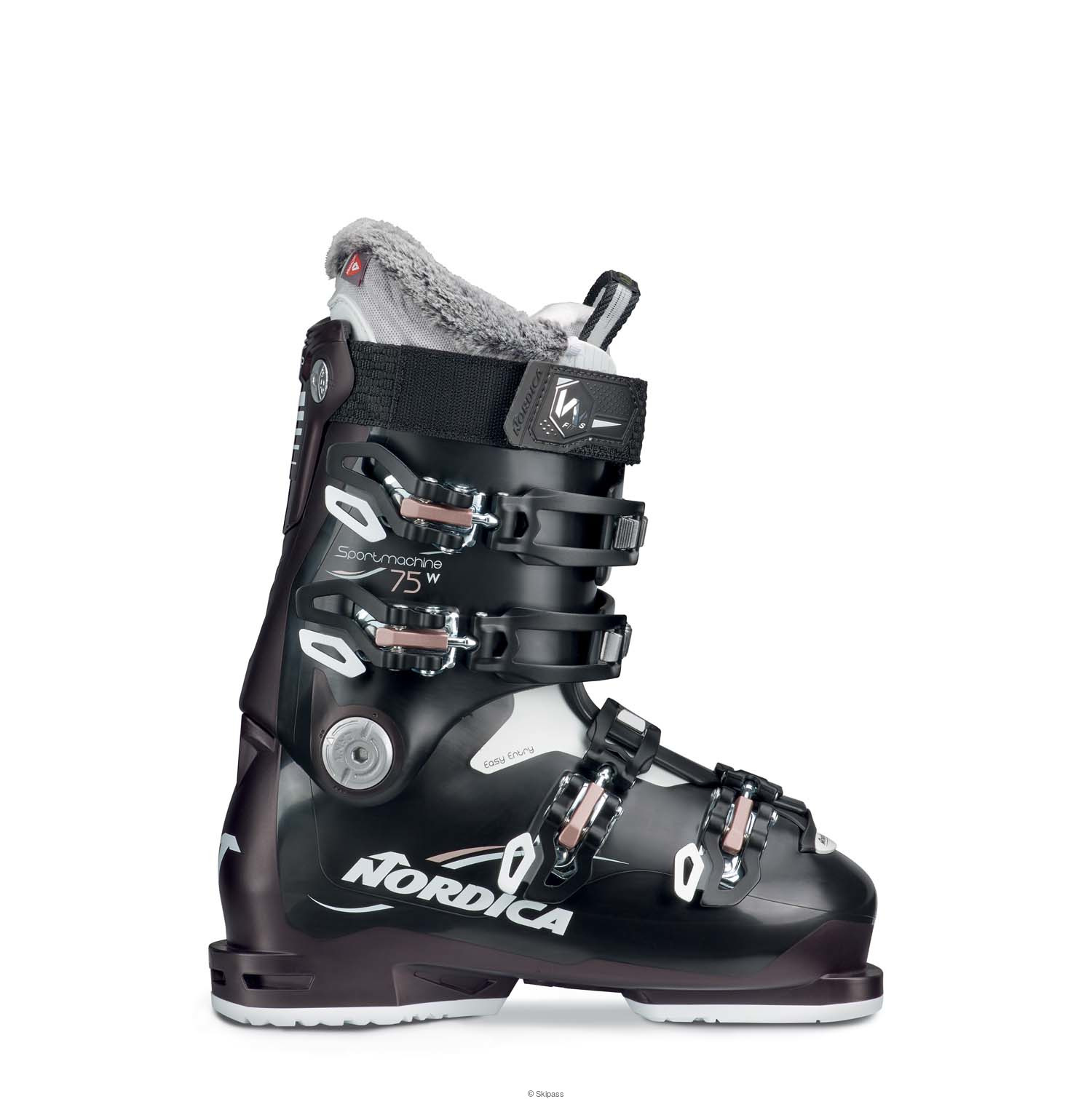 La chaussure Sportmachine 75W renforce la confiance et la maîtrise, pour vous permettre d'atteindre le niveau que vous visez. Avec son last plus large et sa coque plus souple, elle est extrêmement indulgente, tandis que l'arête et la semelle renforcées facilitent l'amorce de virage et les transitions entre les virages. Pour un ajustement très précis, le chausson et la coque sont facilement personnalisables. L'isolation Primaloft® du chausson vous garde au chaud et au sec, tandis que le cou-de-pied en deux parties facilite grandement l'entrée et la sortie du pied. Et afin de favoriser une posture plus naturelle qui améliore l'équilibre et réduit la fatigue musculaire, le collier s'ajuste aussi avec précision pour envelopper parfaitement le mollet. Axée sur la progression, la chaussure Sportmachine 75W rend la pratique du ski plus facile -- et encore plus agréable.