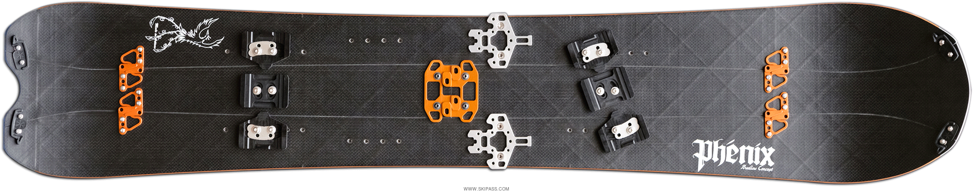 C'est la splitboard 4 parties la plus légère du marché avec ses 2700g nue ( pour des riders de moins de 70 kg / ski 88mm pour la 156 et ski 92mm pur la 162 ) avec une consruction composée d'un noyau paulownia / bambou et de fibre quadriaxial en carbone qui permet d'avoir un vrai ski de randonnée, et un vrai snowboard pour la descente. Développé en deux taille 156 et 162 avec un flex adapté en fonction que le rideur soit masculin ou féminin.