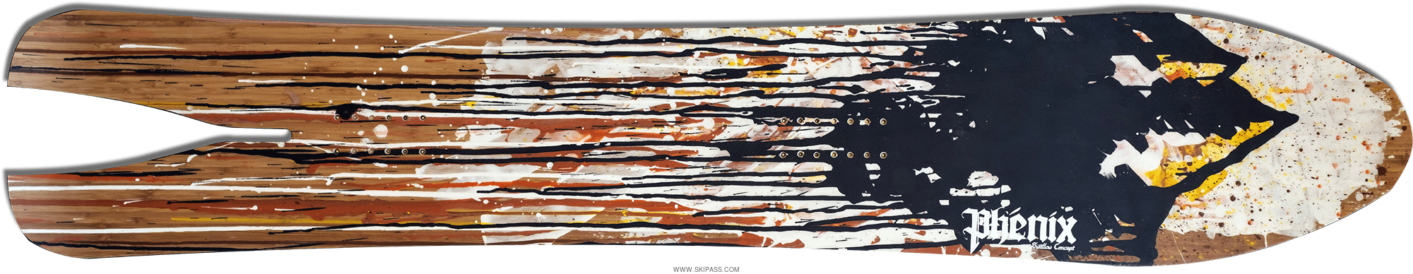 - Noyau bois : Peuplier / Frêne pour un maximum de solidité et de réactivité sans oublier un peu de légèreté. / - Fibres : Triaxial verre / - Wood cap (bois naturel respectueux ou essence de reconstitution) / - Semelle Isosport ultra rapide et résistante, un standard des semelles haut de gamme. / - Swallow tail renforcé dans une chaussette hybride Carbone / Kevlar / - Spatule plate de série avec son Blunt. Nous consulter pour un relevé de spatule différent.