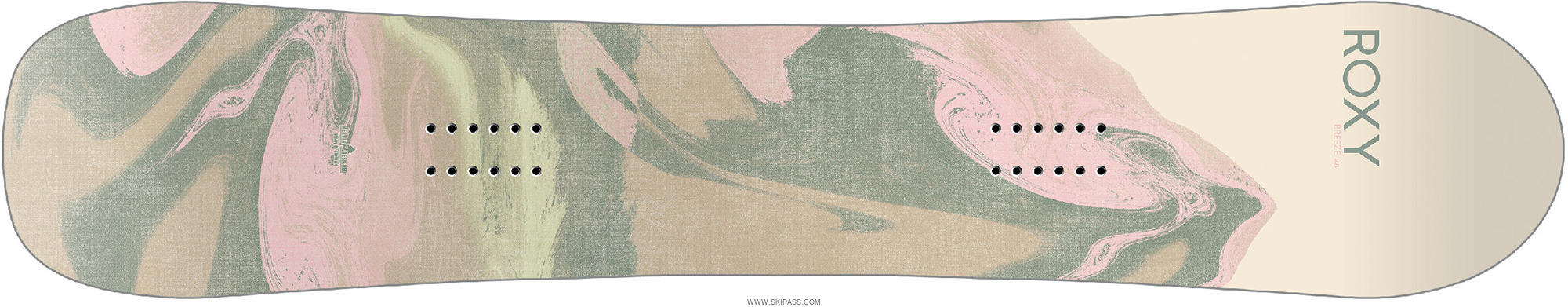 La Roxy Breeze est une planche conçue par Mervin avec un flex modéré et vif. Le shape et la géométrie directionnels, avec une position en retrait de 2,5cm, permettent de garder facilement le nose dans la poudreuse et de rider des terrains variés sur toute la montagne. Le contour C2 hybride doté de la technologie Magne-Traction® combine un contrôle précis des carres avec un mélange parfait de rocker/camber hybride pour un maximum de fun sur tous les terrains. Installez les fixations Roxy Viva sur le modèle Breeze pour une alliance parfaite !