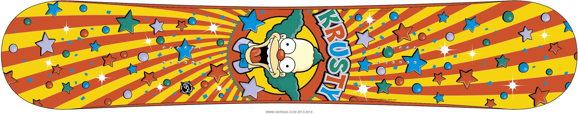 Hé, hé C'est Krusty le Clown! Nouveauté chez les Simpson, la Krusty et son dessin plein de joie (qu'elle vous procurera en la ridant). Préparez-vous pour une balade avec le smile sur cette planche très spécial. De construction de noyau bois et twin tip ,Le Krusty Cruzer vous donne toute la stabilité et la flexibilité dont vous avez besoin pour rider. Tournez, tournez elle,C'est ce que Krusty le Clown ferait!