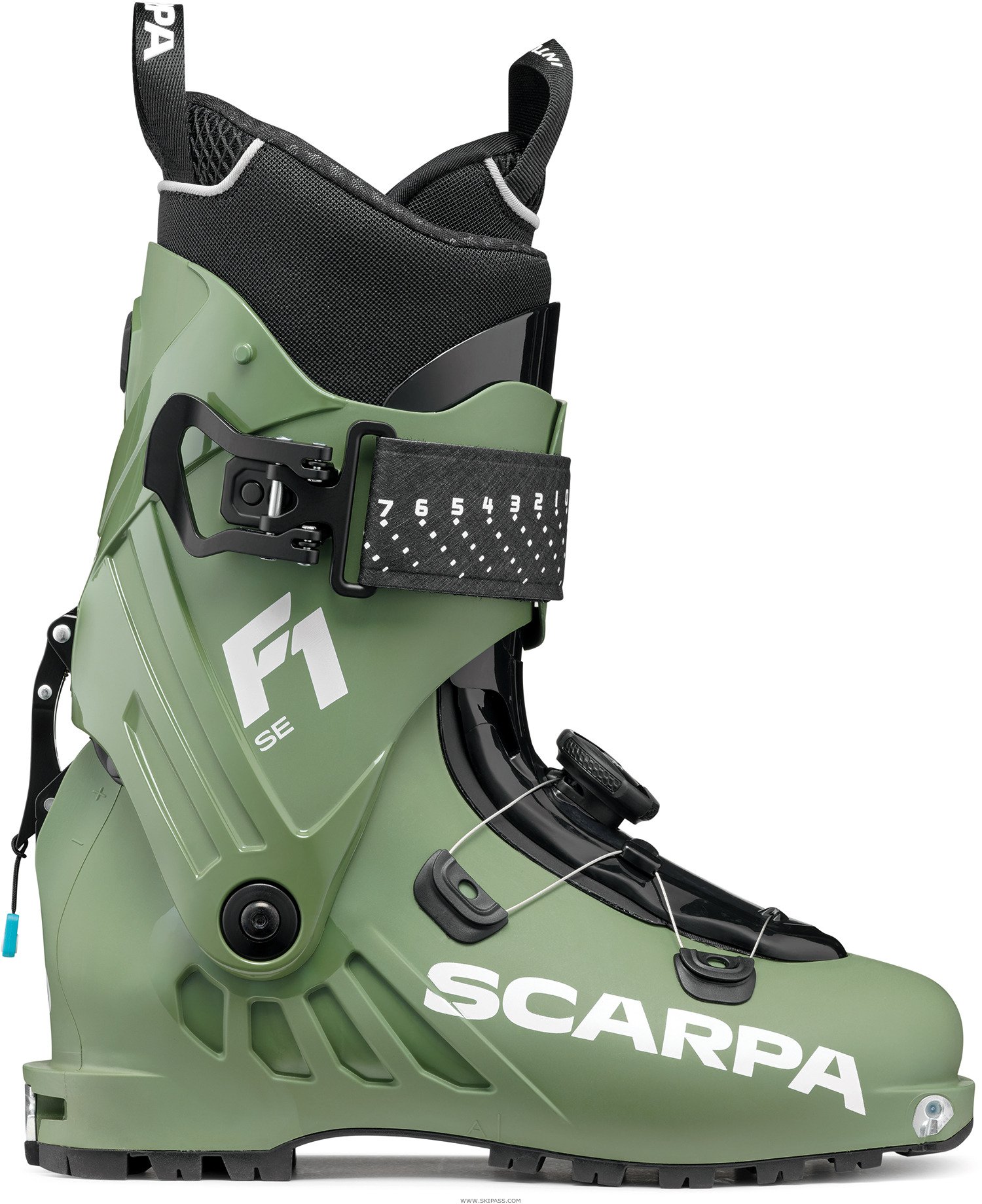 La nouvelle F1 SE complète la ligne iconique F1, ciblant les amateurs de ski de randonnée qui préfèrent le confort à la performance pure, ou ceux qui s'en approchent pour la première fois. L'utilisation de matériaux bio-sourcés et recyclés confirme la vocation de SCARPA pour la durabilité.