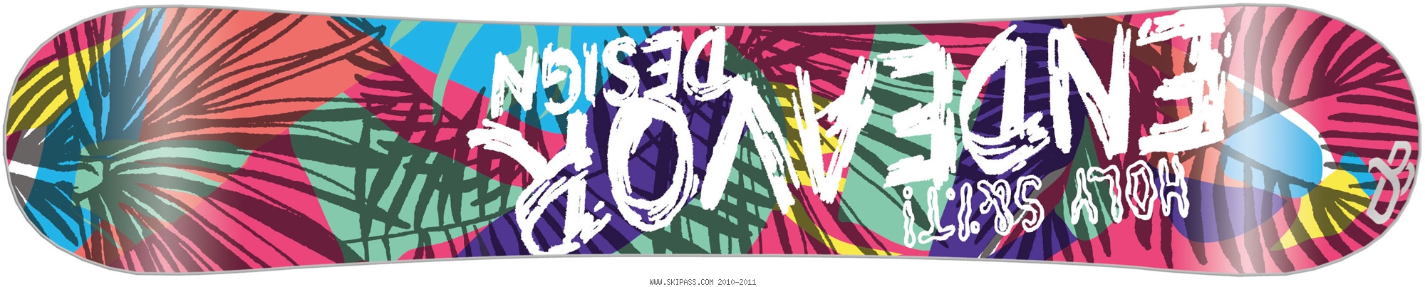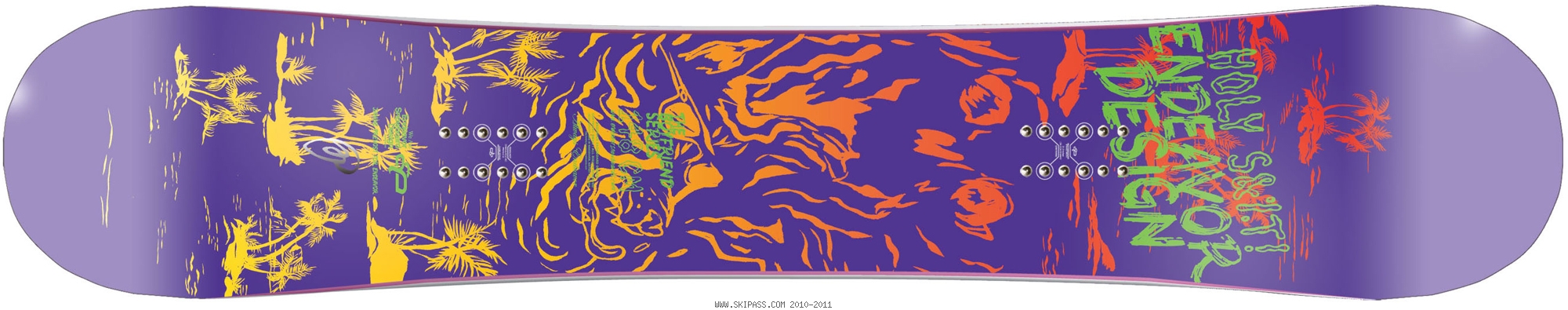 "Award Winning twin Freestyle for women & lighter riders". La Boyfriend est la board freestyle girl ayant raflé des Awards au Transworld Good Wood, au super price, au super pop pour le park et à la deco super dope propre aux boards Endeavor. DESIGN: California Surfer Brah. Venice Beach, tropical forests and warm colours. ARTIST: Janine Prevost