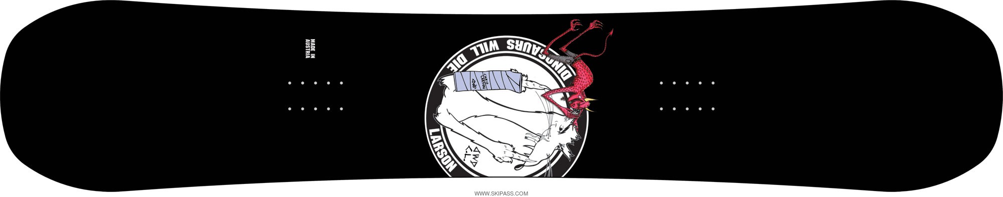 Le nouveau pro-model dans la ligne DWD. La board de Chris Larson est faite pour le jib et plutôt orientée park. Le cambre lively Re-Pop est plat sous les inserts et inversé sous le tip et le tail. Il offre la stabilité d'aller plus vite et plus fort.