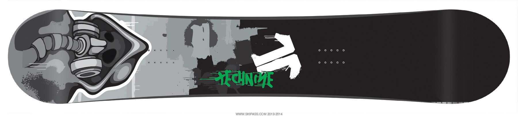 Pour célébrer le 20ème anniversaire de la marque, la Gas Mask reprend le design de la première board Technine produite en 2000 avec un cambre plat à rockers en spatules qui rend la board incisive et précise sur tout types de terrains.