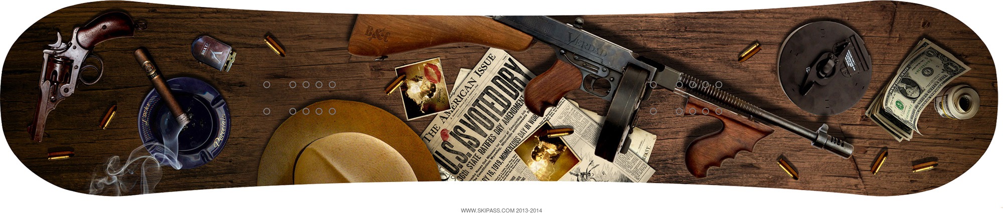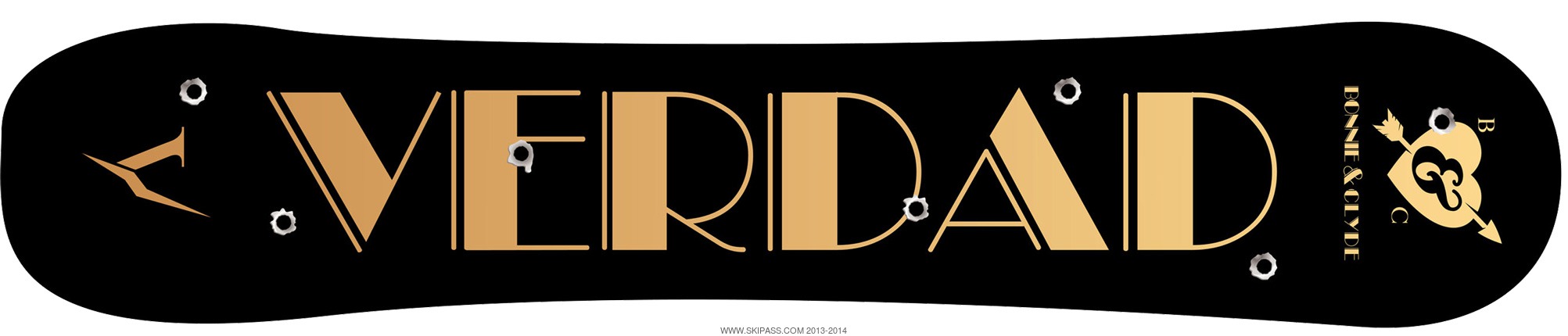 Pour rider aux côtés de la board de Bonnie Parker, voici la planche de Clyde Barrow. Cette board a le même tempéramment que celui dont elle porte le nom. Entre les coups de fusils et les freins à main en voiture dans les virages, Clyde était toujours au taquet pour sa femme. Un rider doit faire la même chose, faire preuve d'autant d'amour et de dévotion pour sa board. Bénéficiant de la même prise en main immédiate que sa complice Bonnie, cette planche freestyle all mountain doit se rider à l'instinct et toujours à fond, sans coup d'oeil dans le rétro. Efficace et rapide, elle possède également un Camrock, mais aussi des fibres bidirectionnelles et des bandes de kevlar pour plus de pop et de contrôle. Bien évidemment, les deux planches sont avant tout nées pour être ensemble à la ville comme à la montagne, mais peuvent aussi se rider en tant que célibataire. Imagines-toi en train de rider la Clyde et tu rencontres une femme seule armée de la Bonnie... Verdad force le destin !