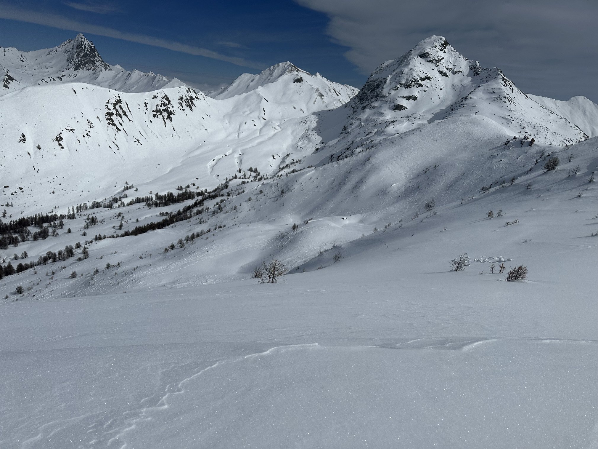Hors piste, c'était neige de printemps presque partout. J'ai trouvé de la neige légère dans des régions bien cachés, notamment en grimpant la crête de Gilly.