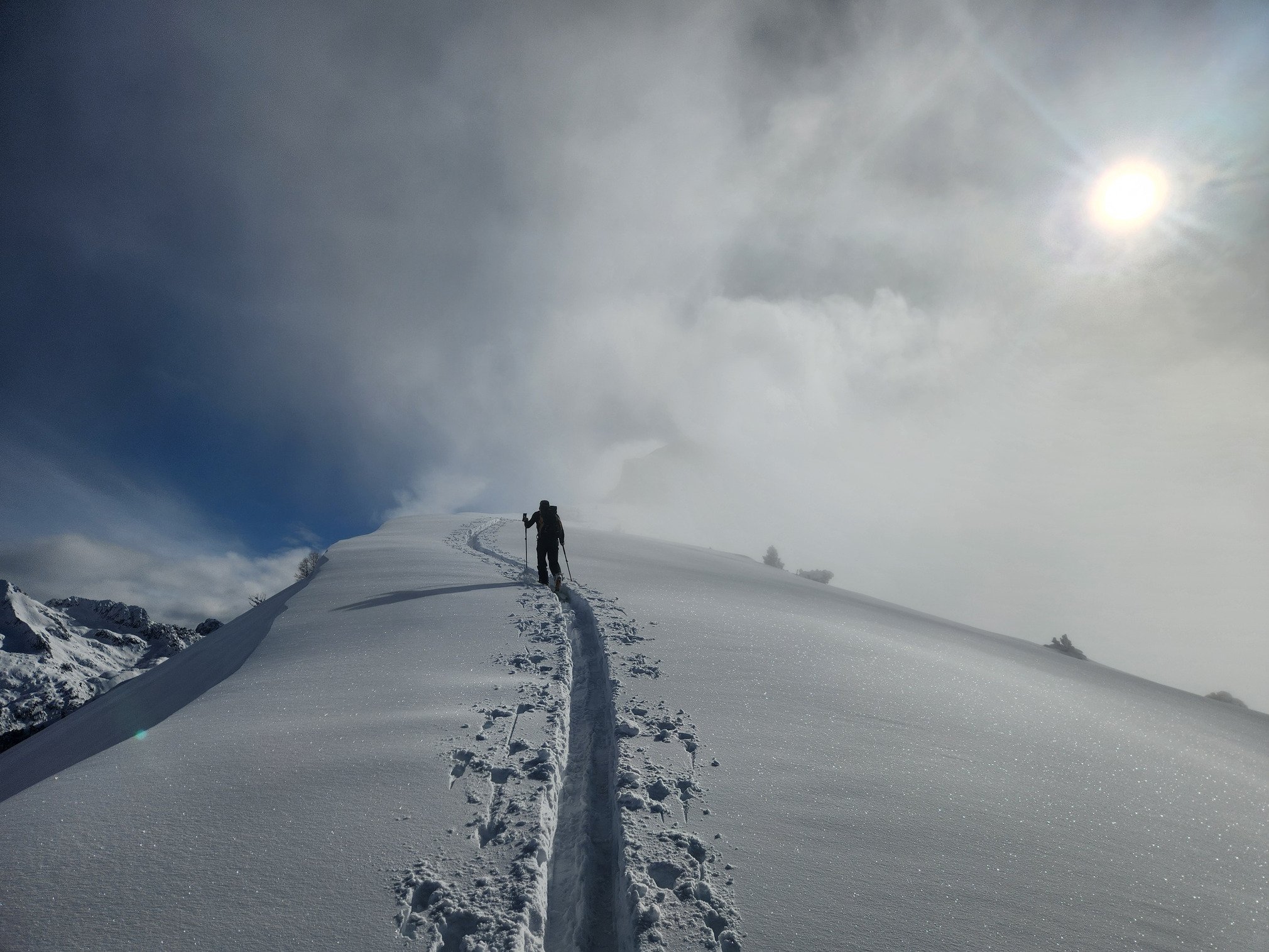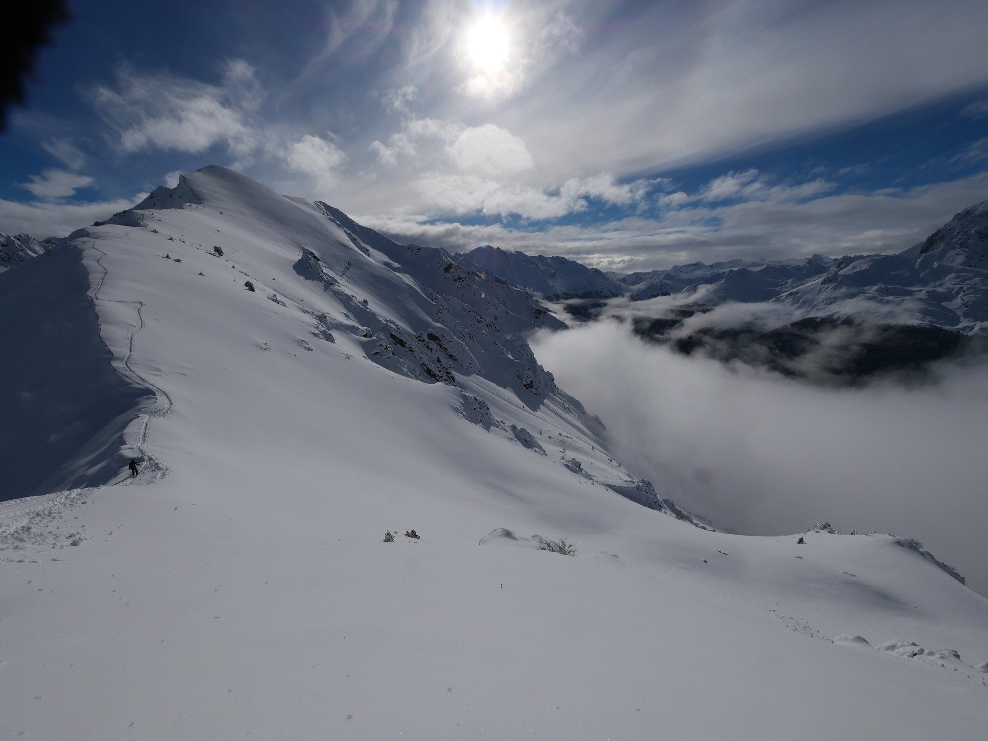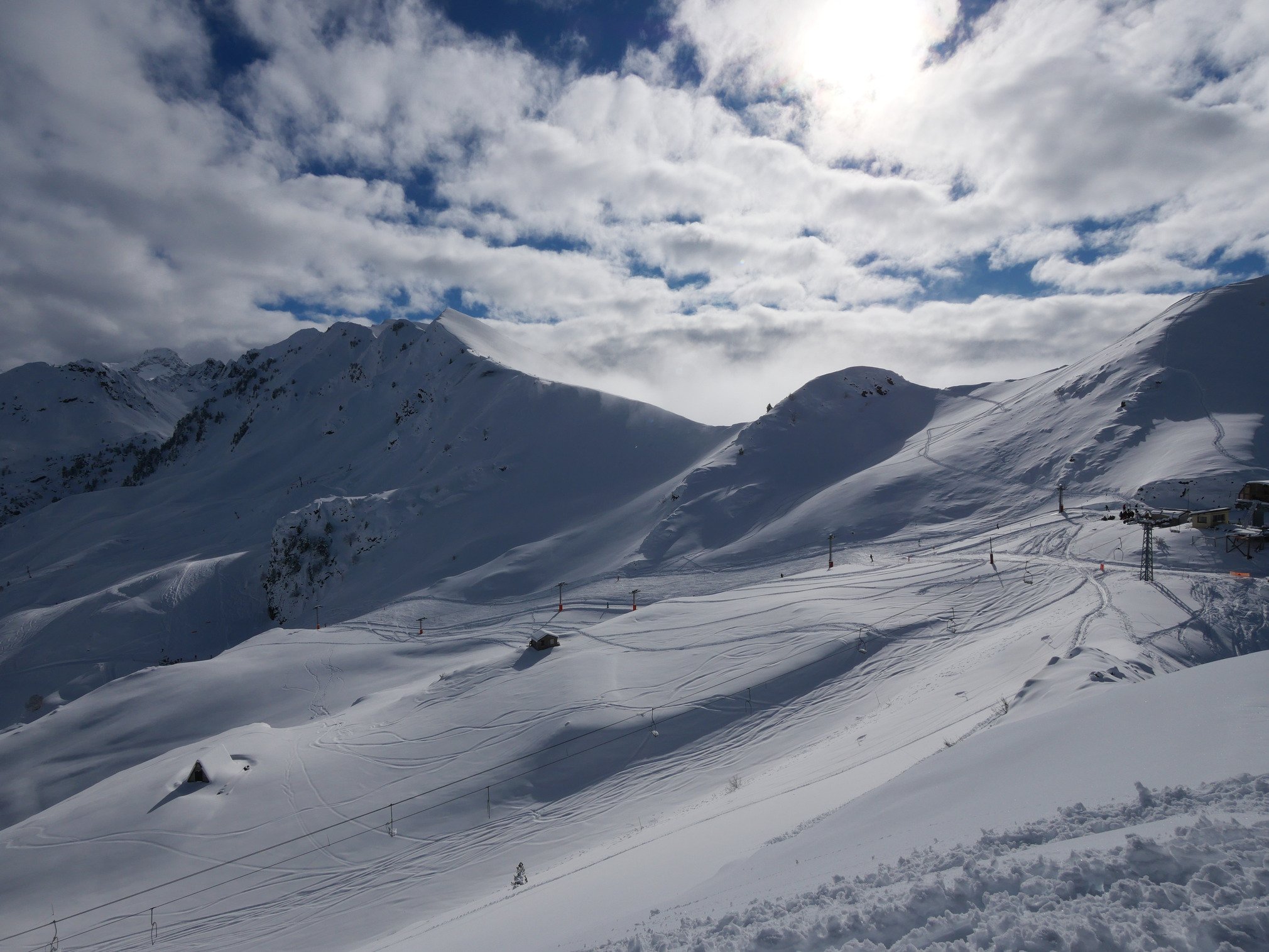 Réveillé par une lumière insolente peu avant 9h, les montagnes bien enneigées semblent très bien éclairées. Ni une ni deux, direction Artouste en compagnie de Clément, un petit forfait et grosse surprise: du beau temps et de la belle neige, un bon 40 cm à 2000 m! Vite lourde en Sud, tout le reste était bon et c'était bien gras! Equipés de 95 au patin, on faisait sous-marin dès lors que la pente était faible. Par contre, toutes les petites remontées en peaux ont donné accès à de très bons virages.