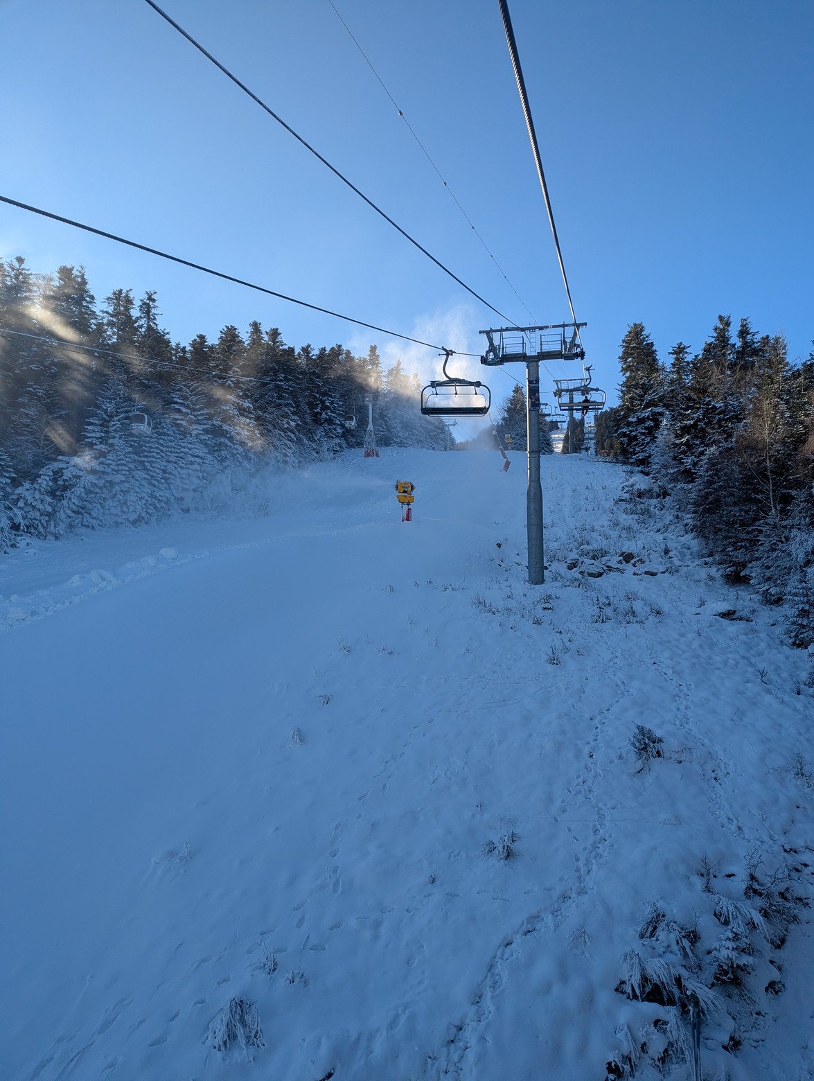 La neige est bonne sur les pistes damées. Ailleurs, il a fallu attendre que le soleil fasse un peu décailler. La production de neige de culture aide bien aussi, avec les températures de ces derniers jours une grosse quantité a pu être produite. Les enneigeurs ont tourné toute la journée, même sur les pistes ouvertes.