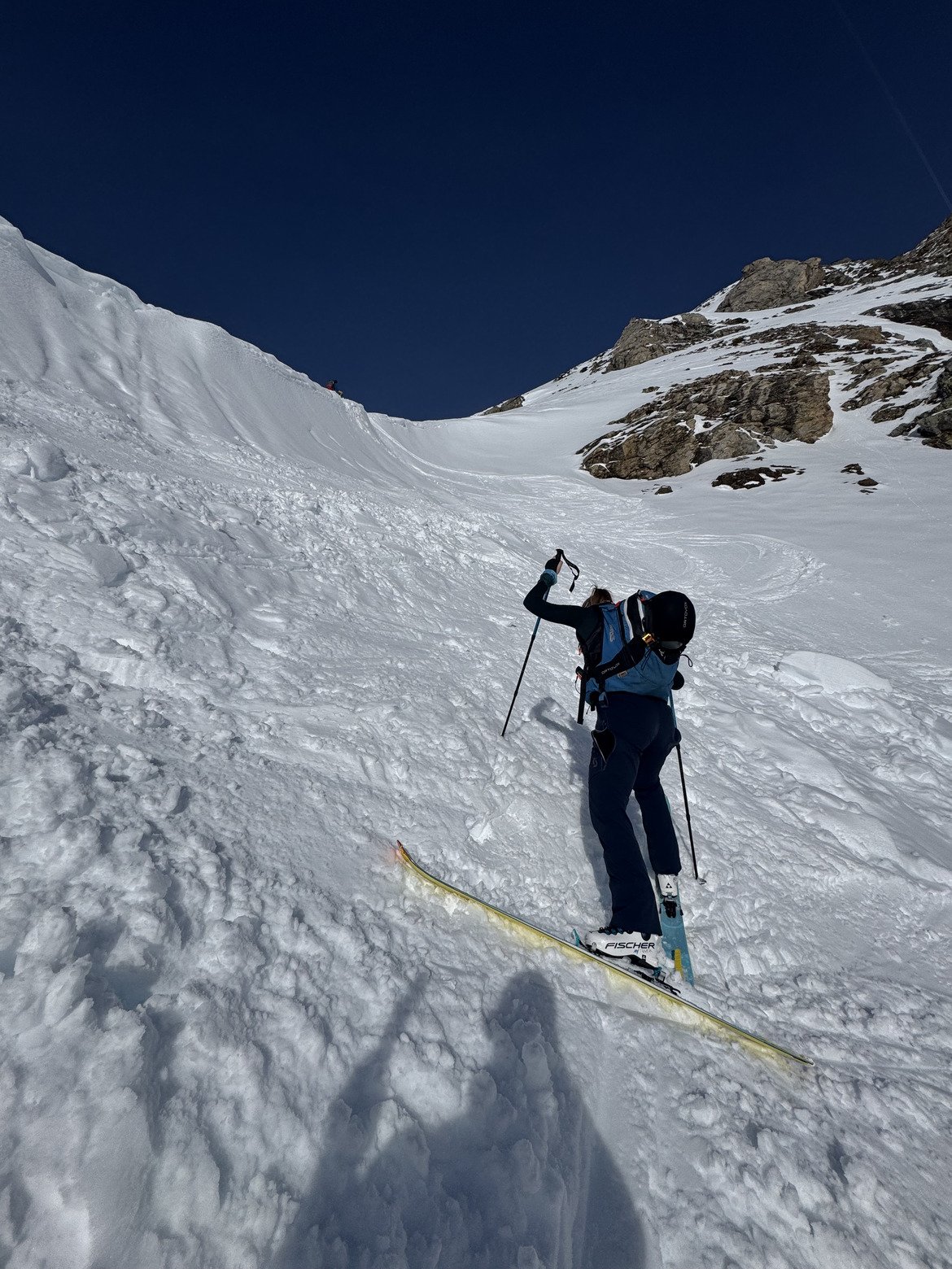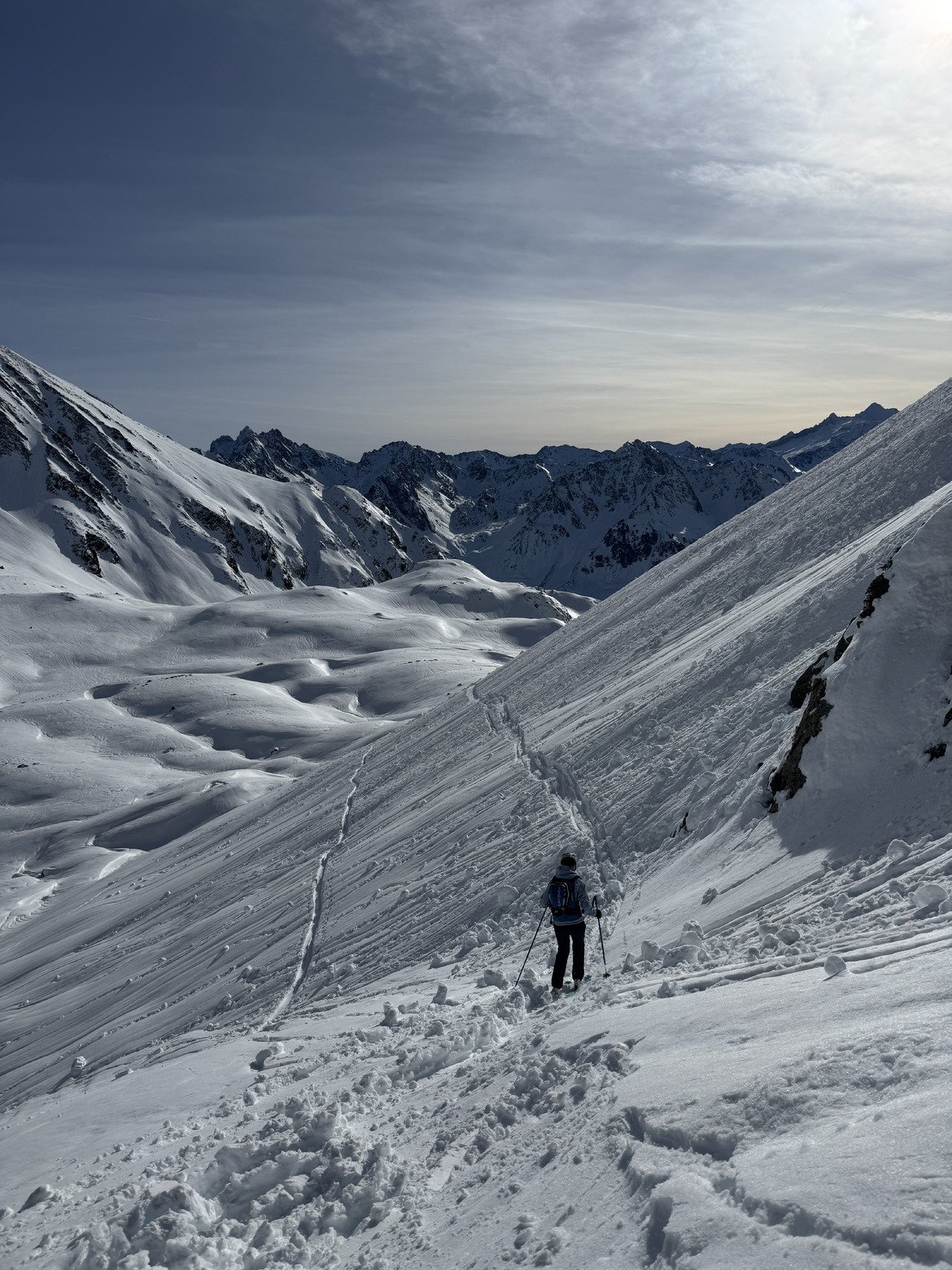 Direction le col d’aoube avec une trace de montée bien tassé par les groupes de skieurs déjà prêt à dézinguer la montagne 🏔️