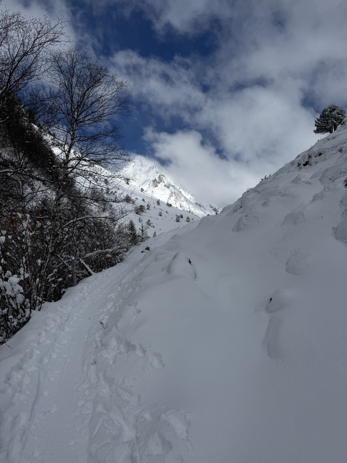 Au départ de Tarbes, toute la chaîne des Pyrénées était bien enneigée. Avec la neige annoncée pour la nuit, nous avons décidé de nous diriger vers le pic de la Montagnette.