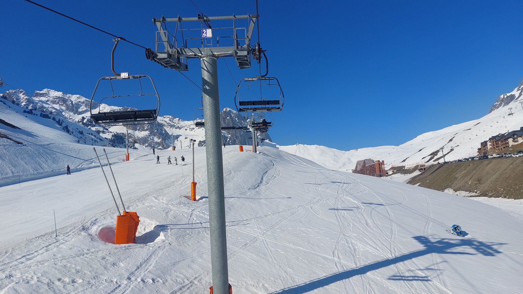 Tempête de ciel bleu avec des températures très douces dès le matin. Peu de monde, la plupart des pistes ouvertes, les autres étant fermées pour manque de neige ou autre.
