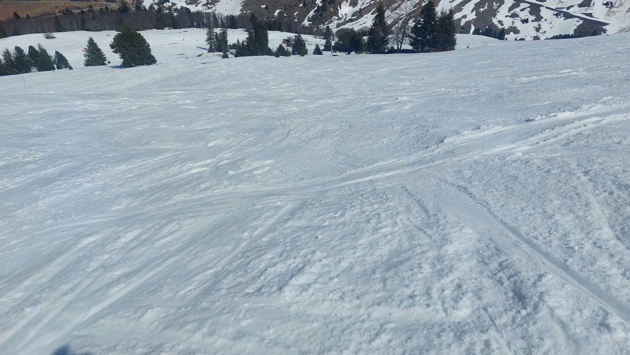 Les pistes étaient bien damées, c'est à souligner car ce n'est pas leur point fort. Les bords de pistes étaient tous excellents dès la fin de matinée selon leur exposition. On en a bien profité.