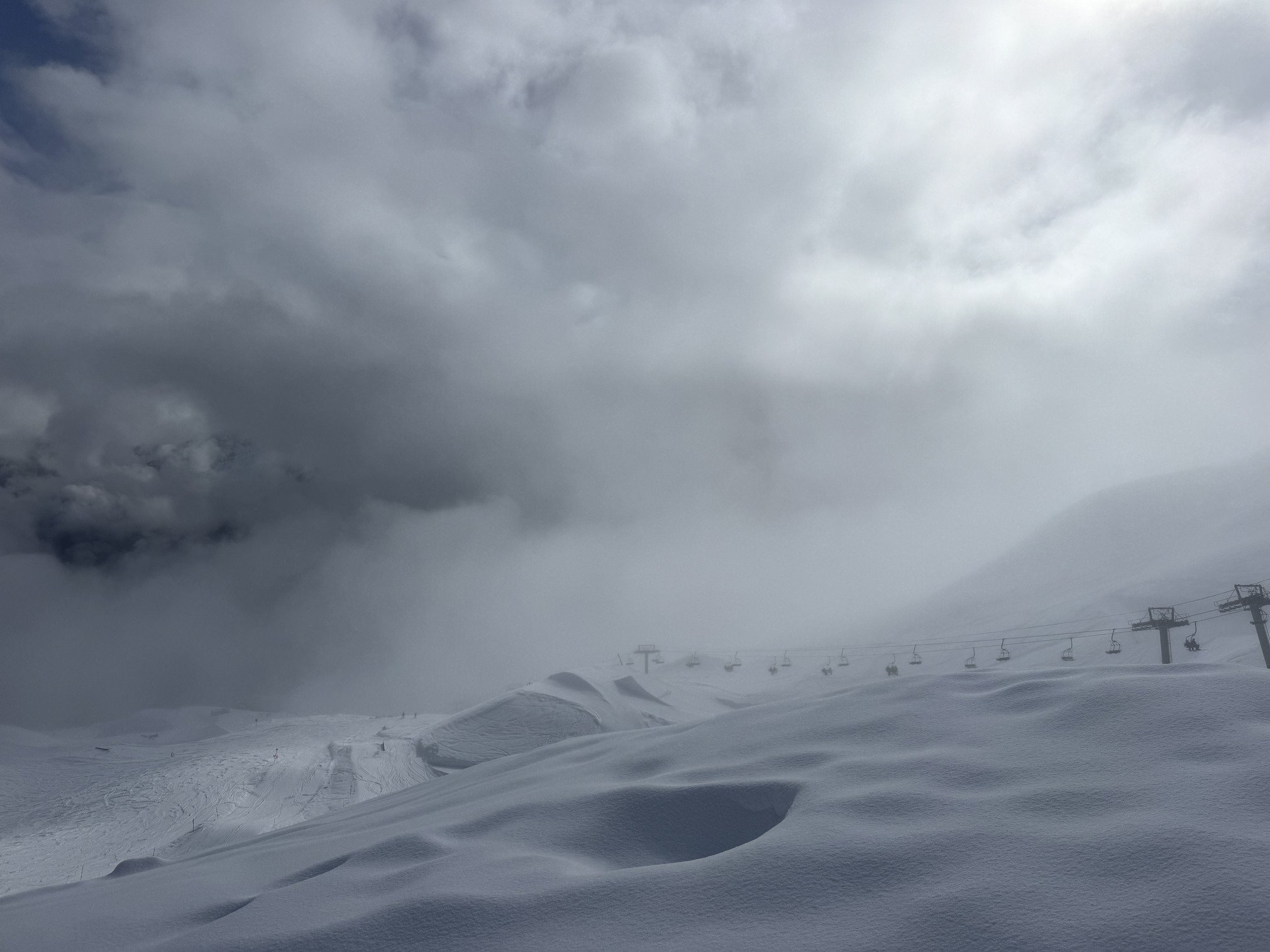 D’énormes gueules de baleine un peu partout entre les pistes (vidéo) bien représentatives de la lourdeur mais aussi de la hauteur de neige ici, quelques coulées d’ailleurs ont fini leur course sur les pistes.