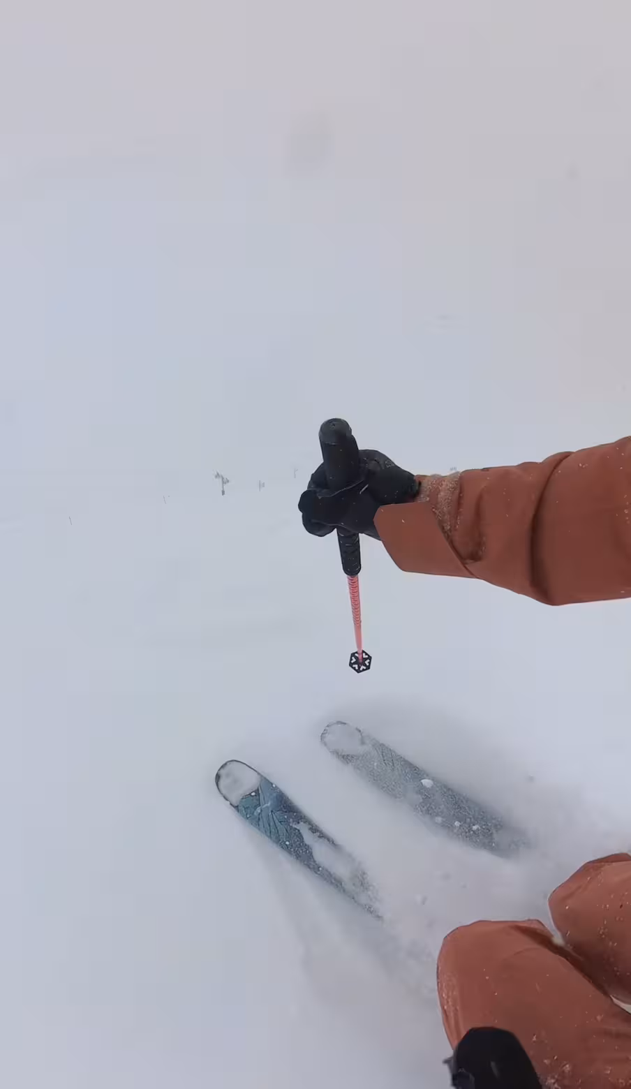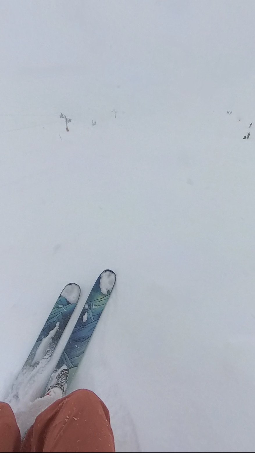 Le temps de s’en mettre plein partout, vu l’hostilité du tableau, personne (ou peu de monde) sur les pistes, et la majorité en PLS à la recherche de leurs skis 😂