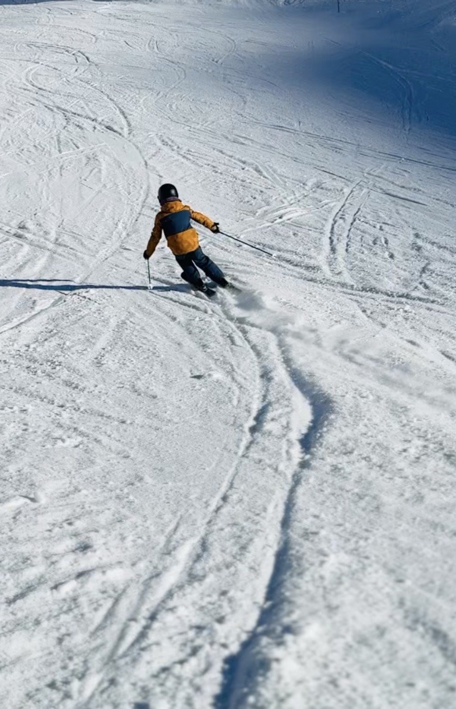 Un 5/5 pour le soleil radieux, la fréquentation plus que light en ce samedi…. Et le carving du fiston …