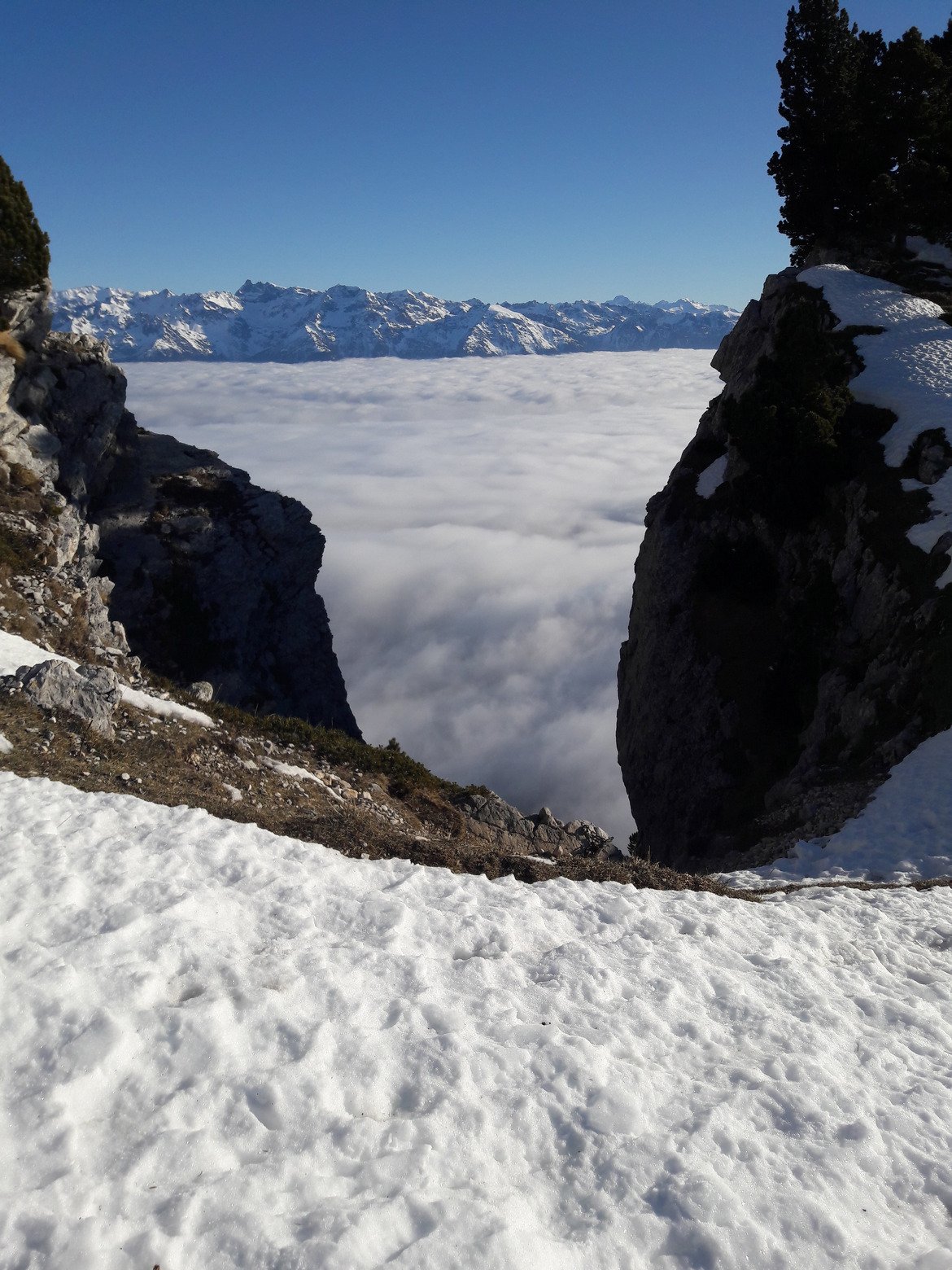 Désormais dans le Nouveau Climat, on a le choix entre l'anticyclone glacé , l'anticyclone chaud ou la douche tropicale. Les depressions neigeuses se font de plus en plus rares. Nous sommes donc dans le 1er cas avec une neige carton-glacé inskiable dans des paysages de mer de nuage à couper le souffle.