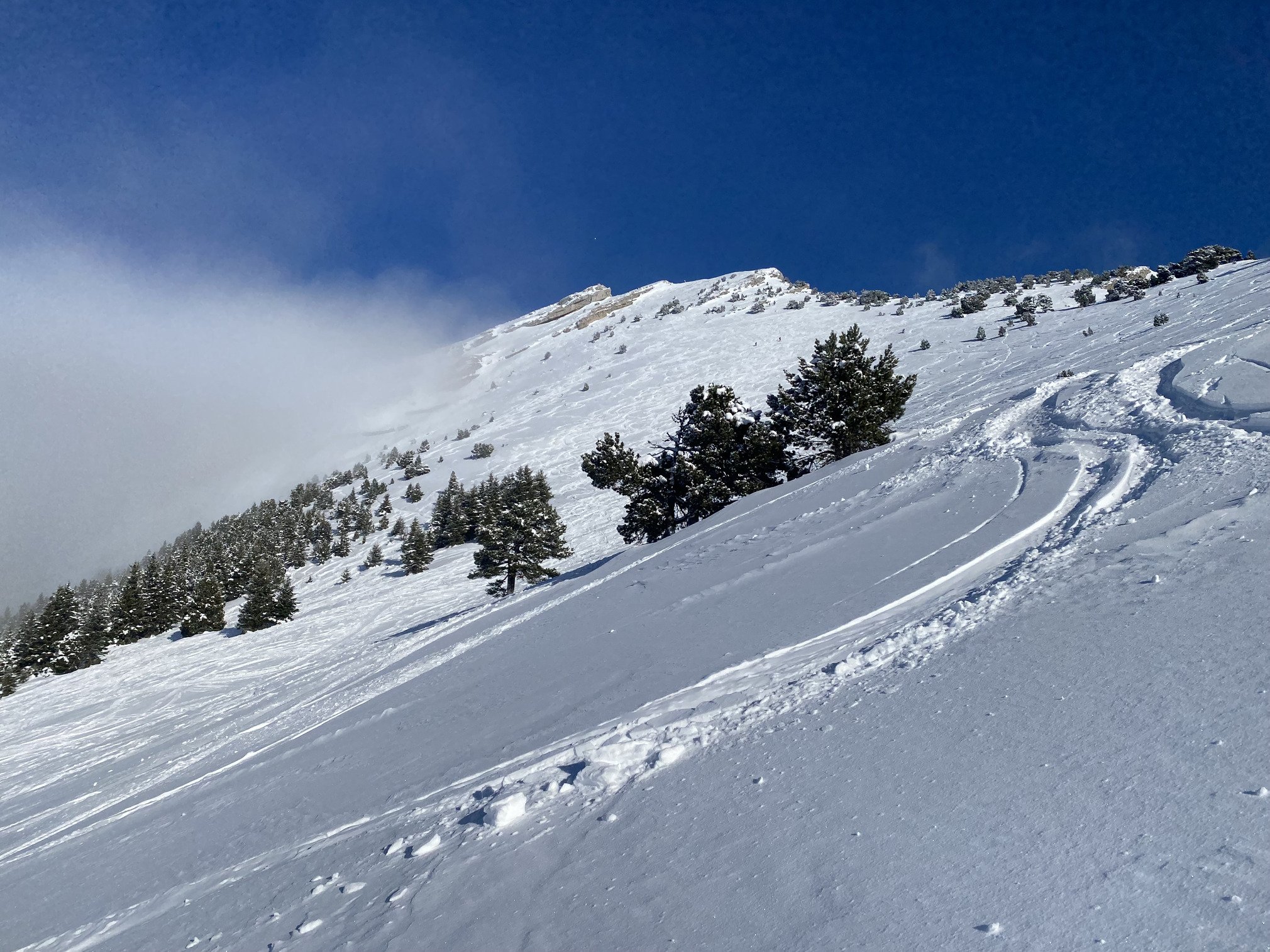 👉 Dès la prairie et jusqu’en haut, c’est grand beau avec un bon 20/25cm de poudreuse déjà bien crayonnée !!