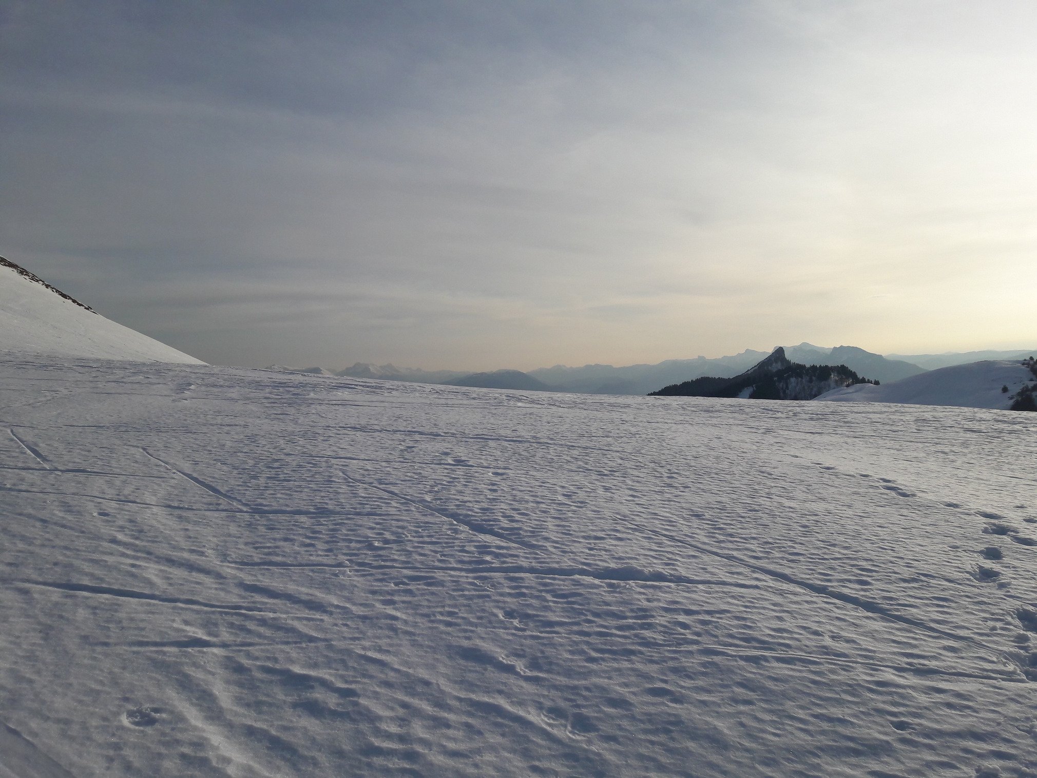 Neige transformée, toutes les saisons y étaient mais un beau soleil qui la rend skiable, et le SILENCE dont on rève parfois dans l'agglo.