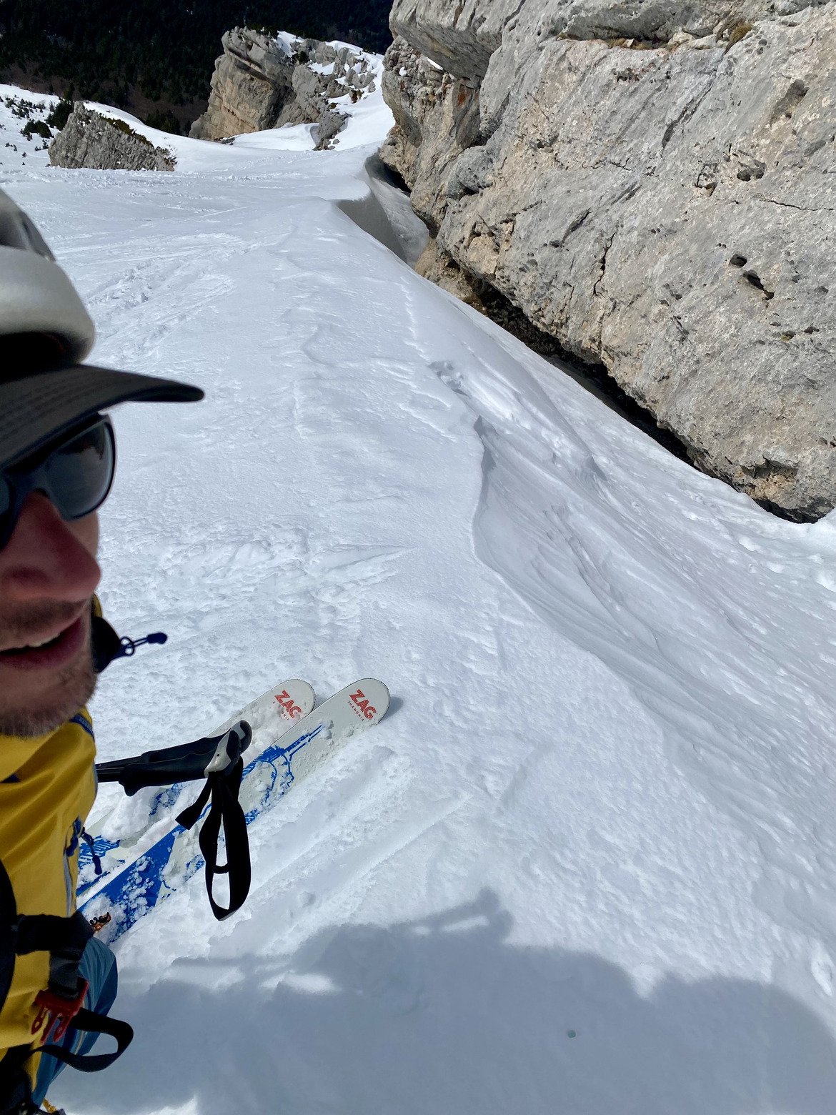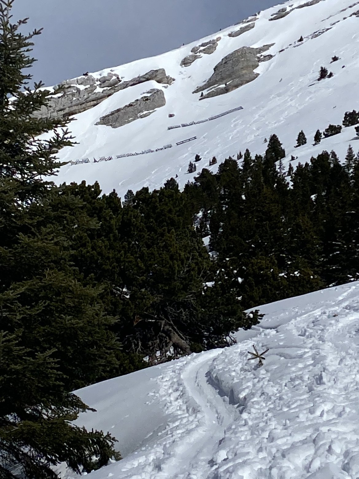 Montée sur trace bien redurcie, descente par la rampe depuis le câble sur une belle moquette qui ne restera agréable que le temps d’atteindre les paravalanches… C’est dire à quel point le bon ski n’a pas duré !