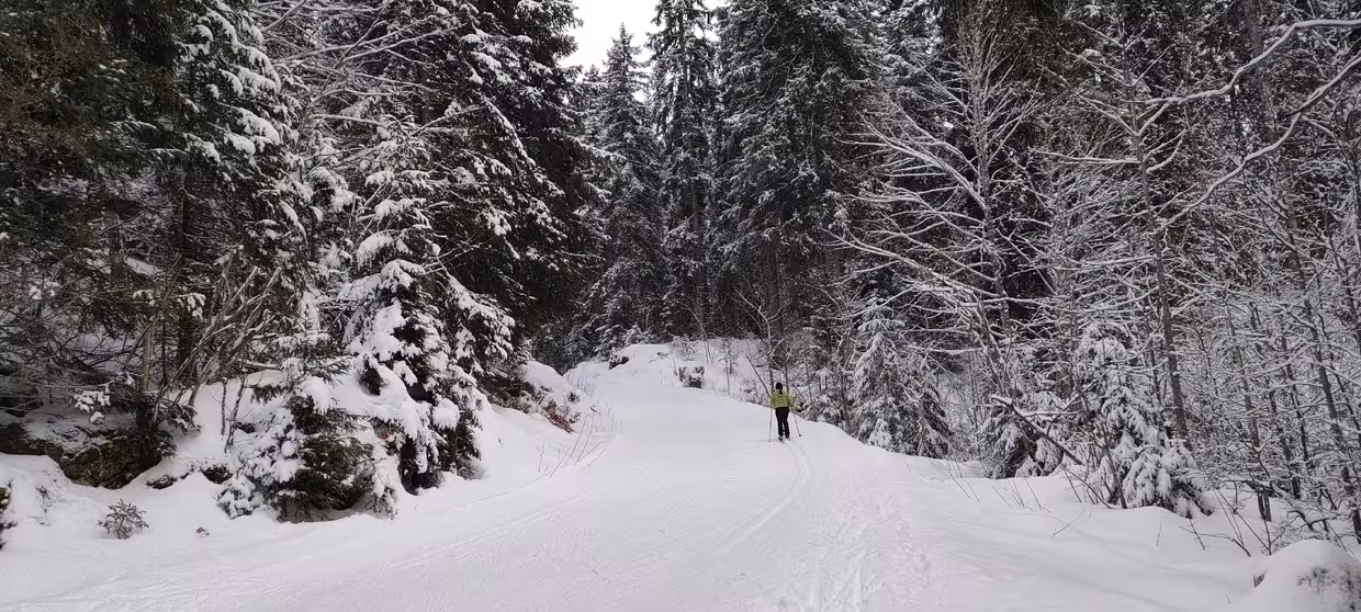 Après une belle session freeride à la Féclaz et du bon ski sur piste au Revard, nous voici donc à Crolles (la porte d'accès du domaine nordique côté Revard)... à 16h40 🤣 Bon, c'est un peu tard sachant que les pistes ferment normalement à 17h, mais comme on n'a rencontré ni pisteurs ni dameuses, ça n'a pas posé de problème... et on a fini à la nuit, à 18h. Et je précise qu'on n'a pas "massacré" le damage, puisqu'il n'avait pas encore débuté (tout du moins sur notre parcours).