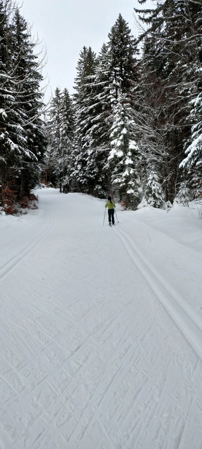 On décide de se faire une Grande Teppe, malheureusement seulement en "semi boucle", parce que c'est fermé au niveau de la Croix du Berger. Hormis quand on se rapproche de la porte de Saint François, où l'enneigement est assez limite (quelques cailloux), les conditions étaient vraiment agréables. Aussi bien pour le classique (bonne accroche dans les rails) que le skating, où les passages de la journées ont permis de faire chasse neige, et de faire ressortir un fond légèrement lustré, juste comme il faut pour donner une bonne glisse sans être casse gueule (on sentait encore la couche fraîche).