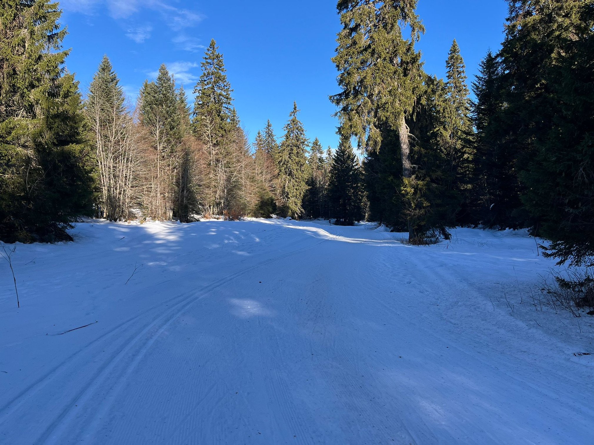 Je m'attendais à un massacre et finalement pas tant : Bon regel nocturne, ça transforme très vite dans les prés du départ des pistes mais en forêt ça reste bien dur et froid. Quelques traces de terres et cailloux mais ça reste très acceptable. Surtout avec le forfait saison faut pas s'en priver