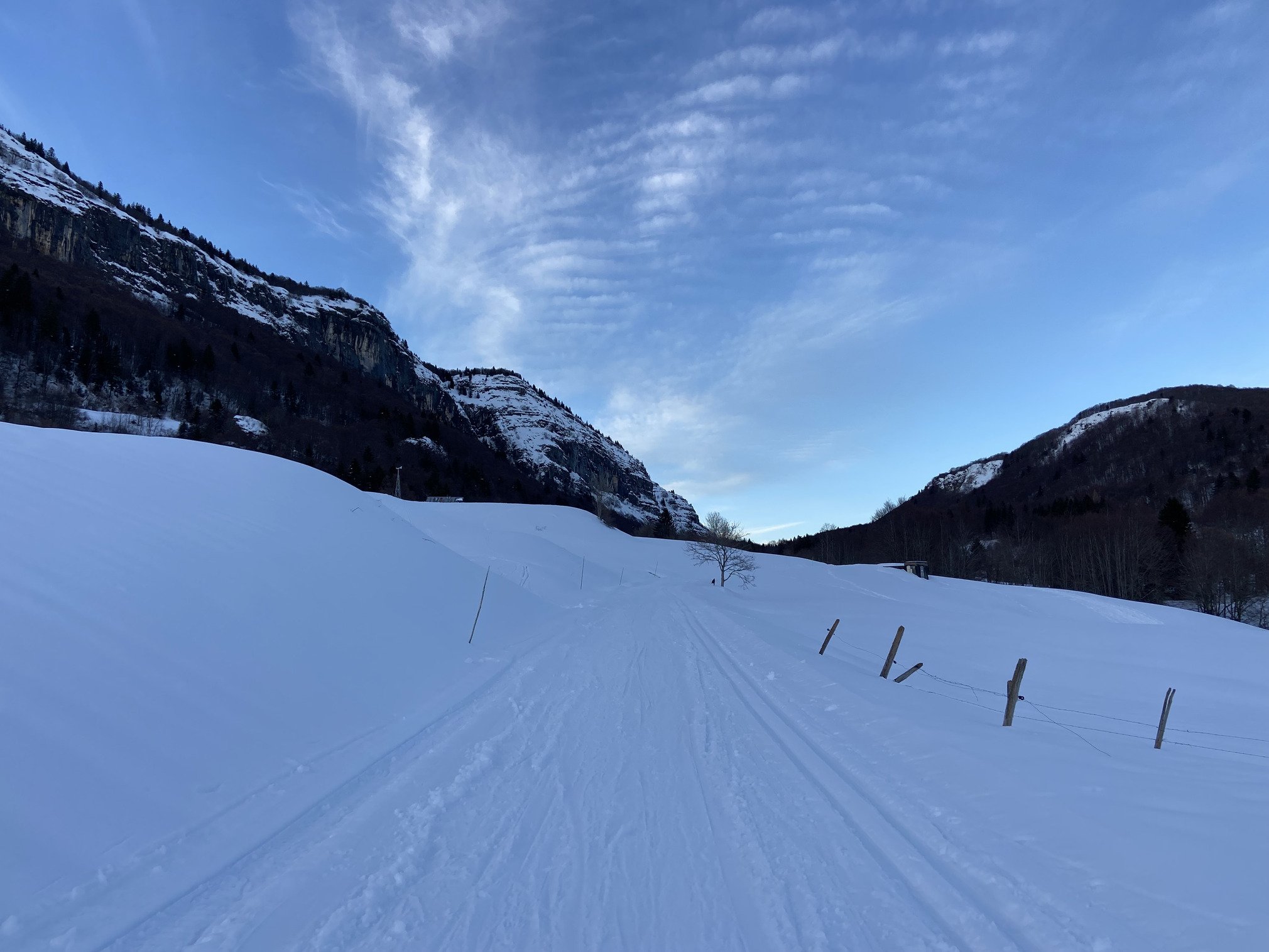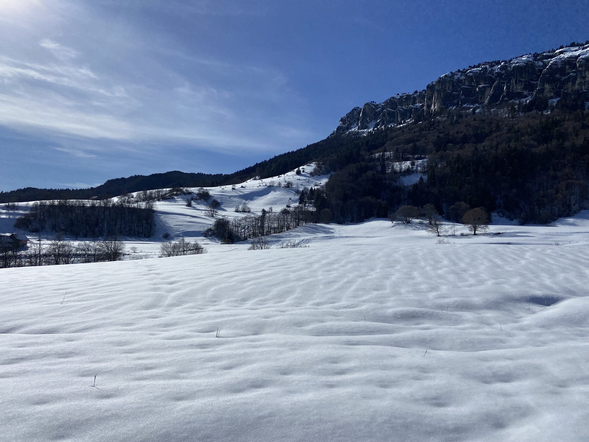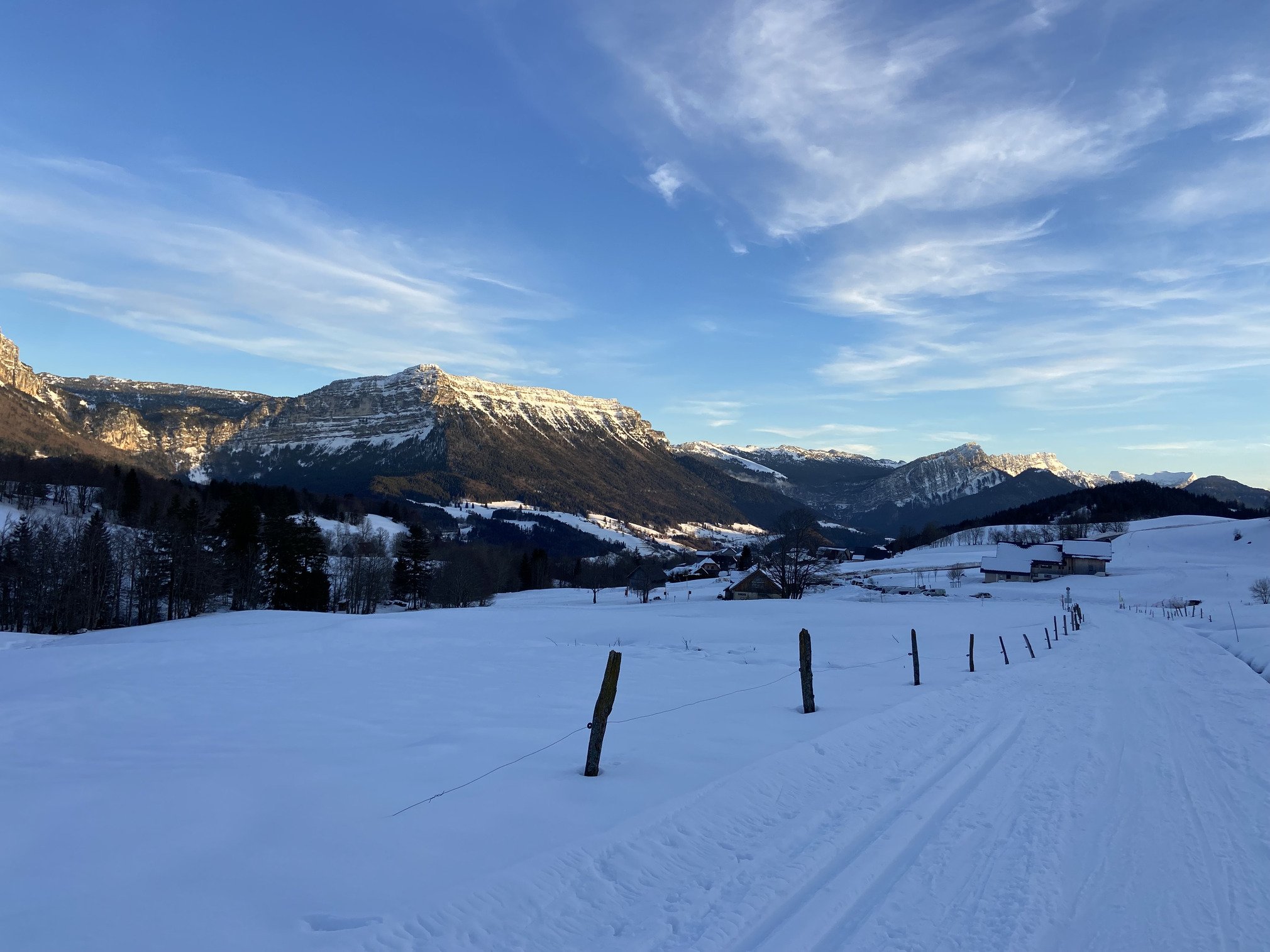 Belle neige, beau soleil : cet aprĂšs-midi câest direction le domaine nordique du DĂ©sert dâEntremont. ArrivĂ©e vers 14h30, nous Ă©tions loin dâĂȘtre les seuls Ă avoir eu la mĂȘme idĂ©e. Des voitures garĂ©es le long de la route, parking bondĂ©, du monde de partout.