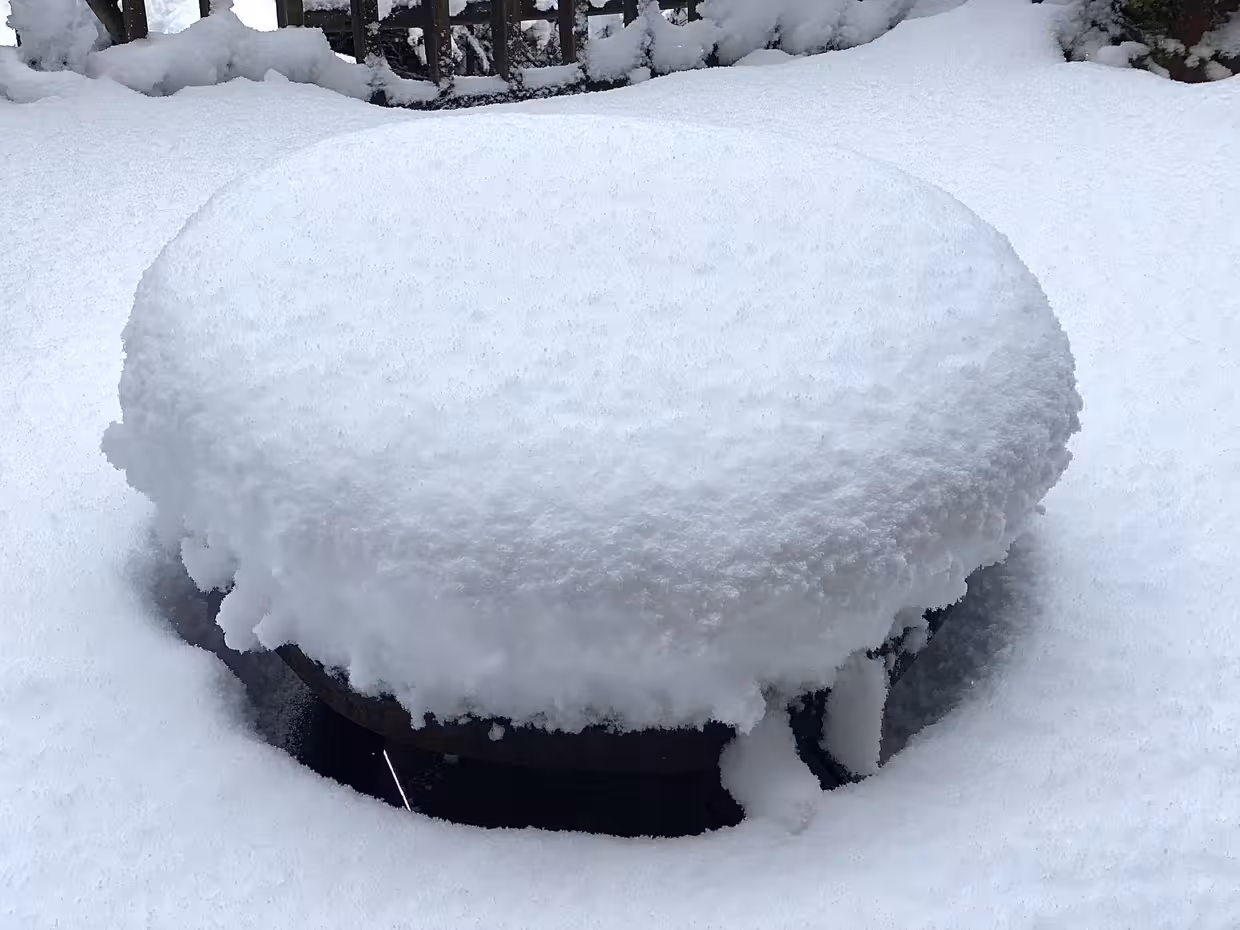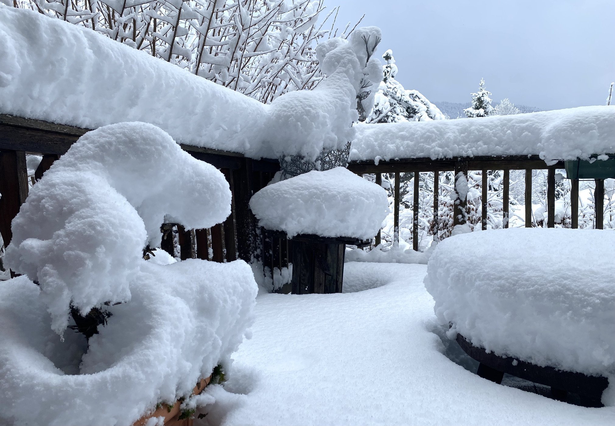 Un bon 25/30 cm ce coup ci, d'une neige M agglomérante..De la trempe de celle qui casse les branches des arbres ou fait effondrer les vieilles toitures de cabanes de jardin mal entretenues... ( True story)