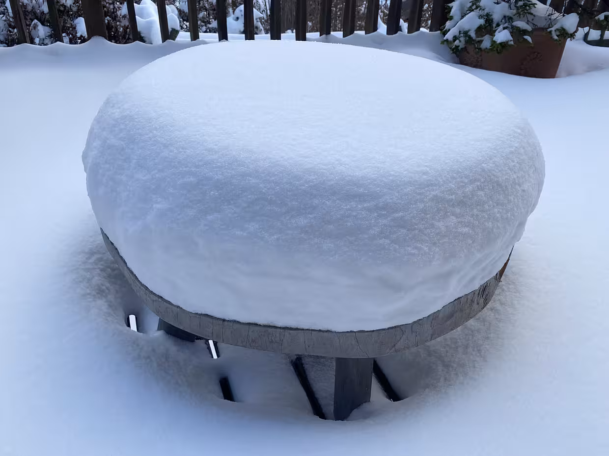 25/30cm de neige très légère, presque trop pour espérer ne pas encore toucher le fond dans des pentes plus sérieuses que celle de ma terrasse…