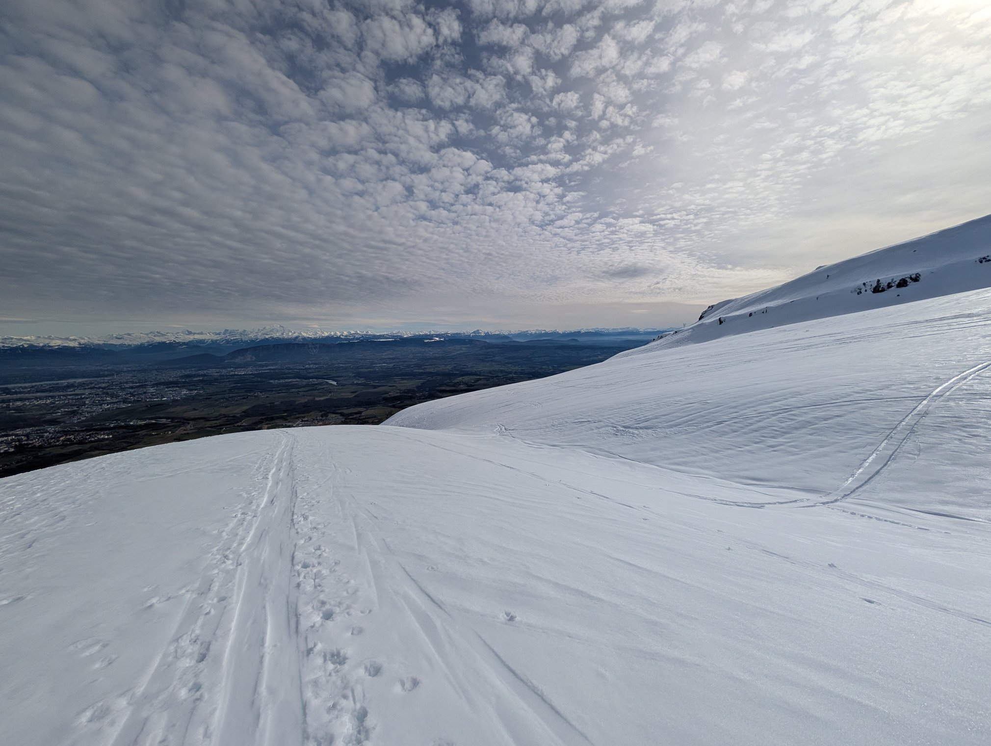 La descente en snow est toujours aussi chaotique, mais byzarrement ca colle pas tant que ca en restant dans les traces des randonneurs.