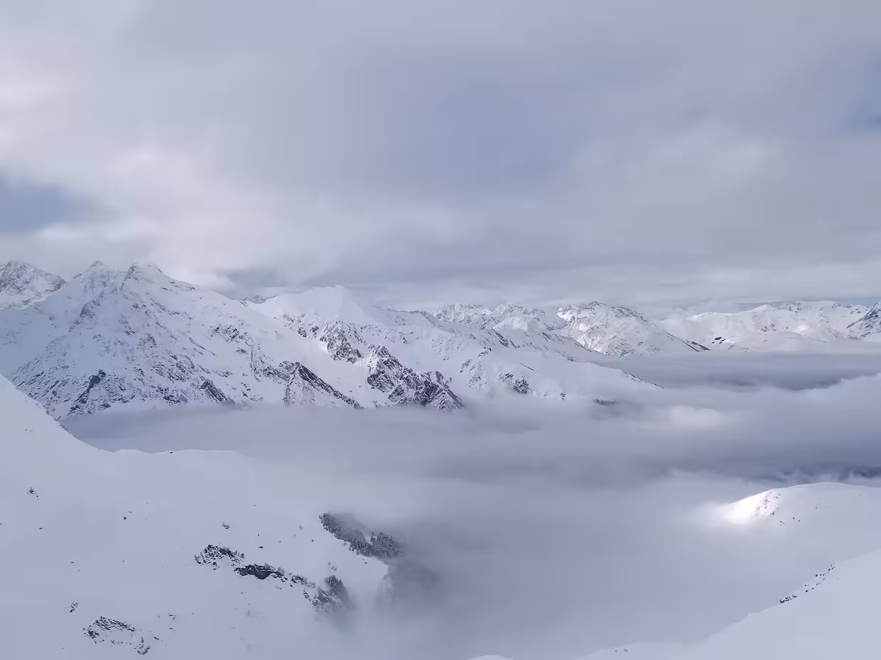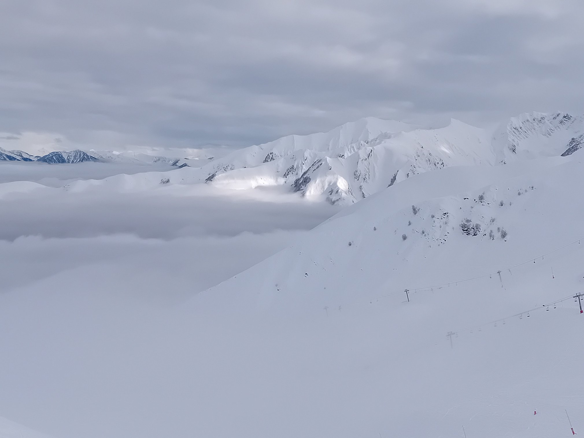 Et arrivés à la station > on est au dessus des nuages ! Où plutôt entre 2 couches, parfois au milieu aussi... mais on y voit et c'est cool.