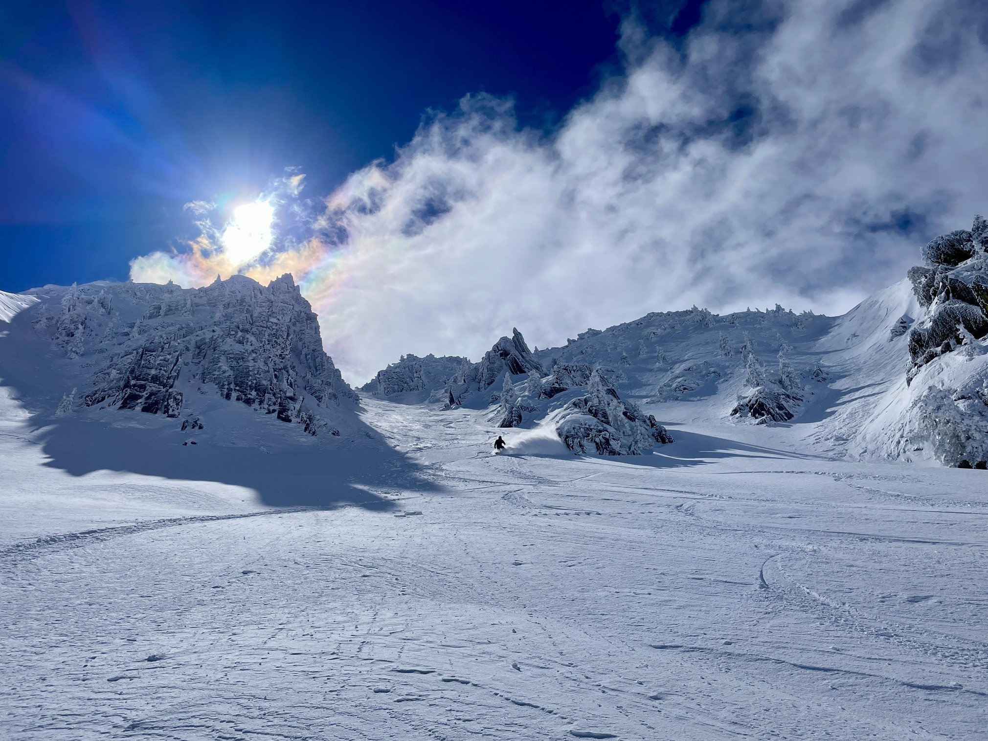 Après 3 jours de tempête pyrénéenne et un mètre de tombé, c'était le jour à ne pas rater. Déjà la veille fut épique à tricoter en forêt dans le mauvais temps, aujourd'hui gros soleil et la station ouverte au complet, laissant tous les couloirs plâtrés comme jamais (mais très ventés) ! Neige plaquée mais bien froide dans les couloirs, on a pu en ouvrir trois avant que l'avalanche de catalans déboule, semaine sainte oblige. Du très très bon ride pour un 3 avril, la saison est loin d'être terminée !