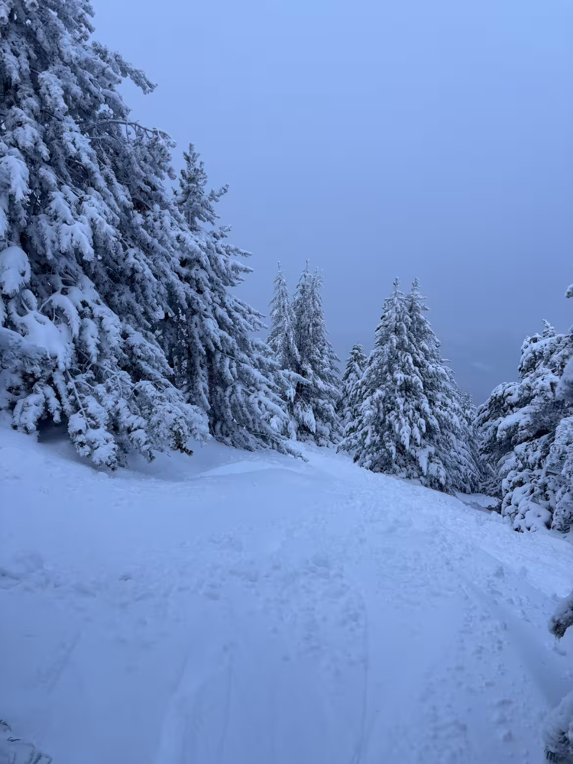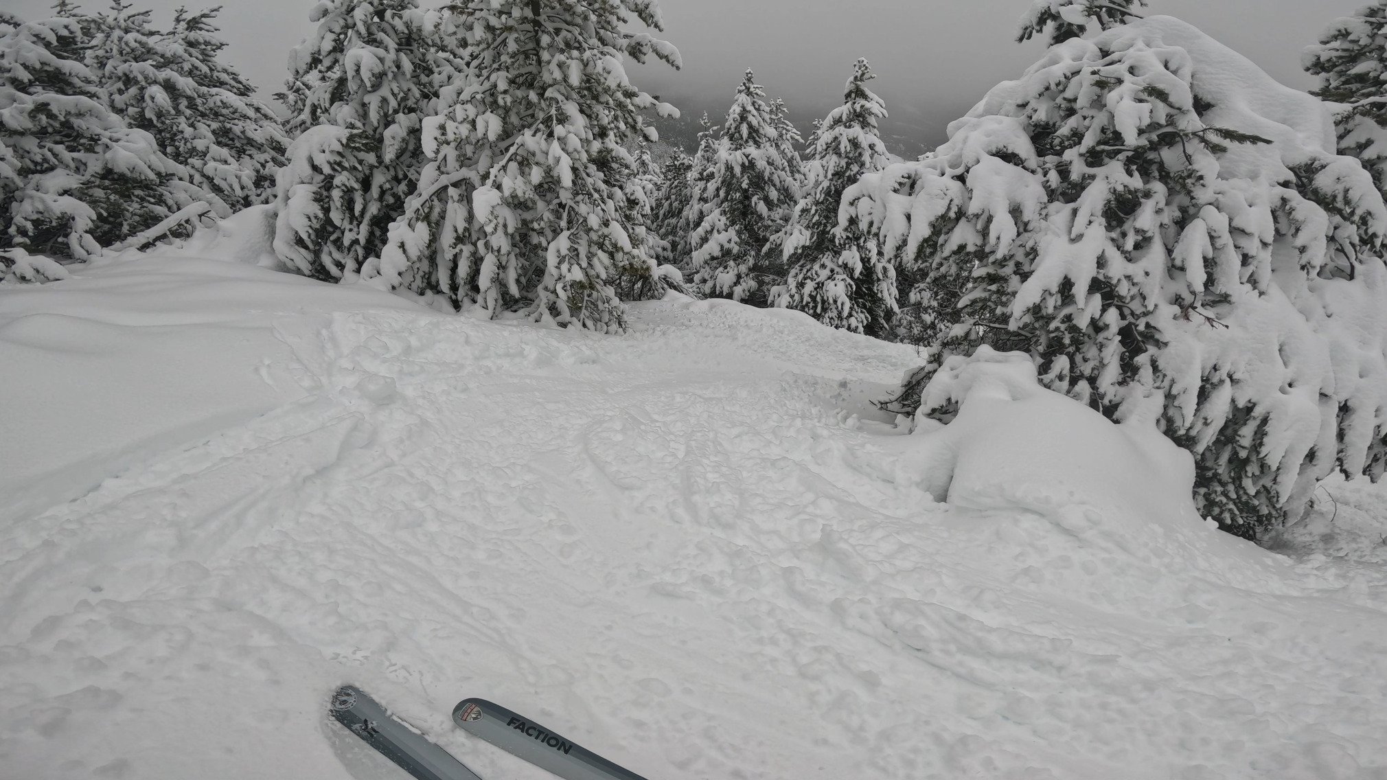 Qui dit épisode méditerranéen dit température assez élevées, avec une LPN aux environs de 1400m qui nous donne une neige fraîche très humide et lourde, pas facile à skier.