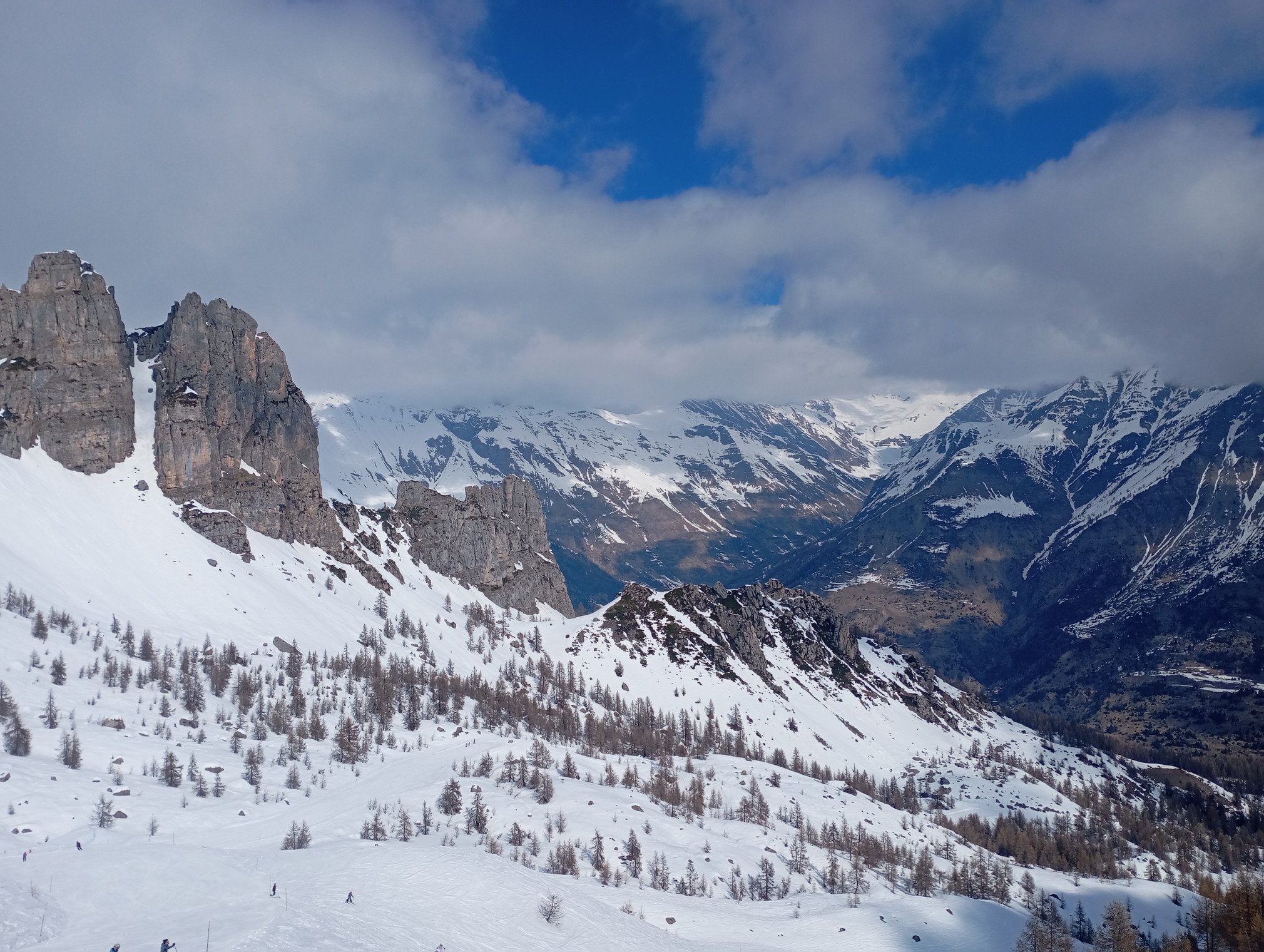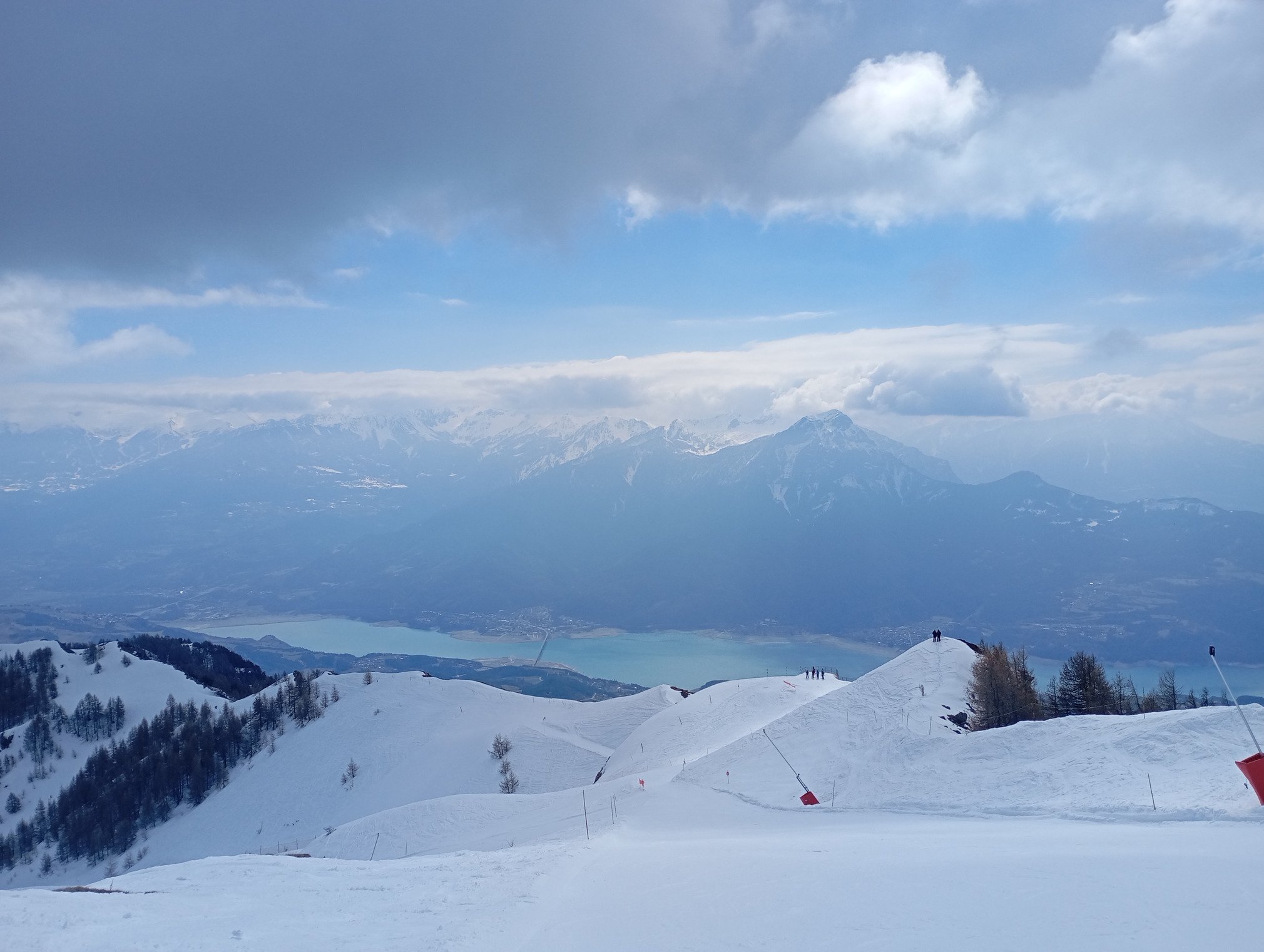 Très peu de monde. Soleil qui fait cache cache, mais pas mal d'éclaircies avec quelques flocons qui tombent.