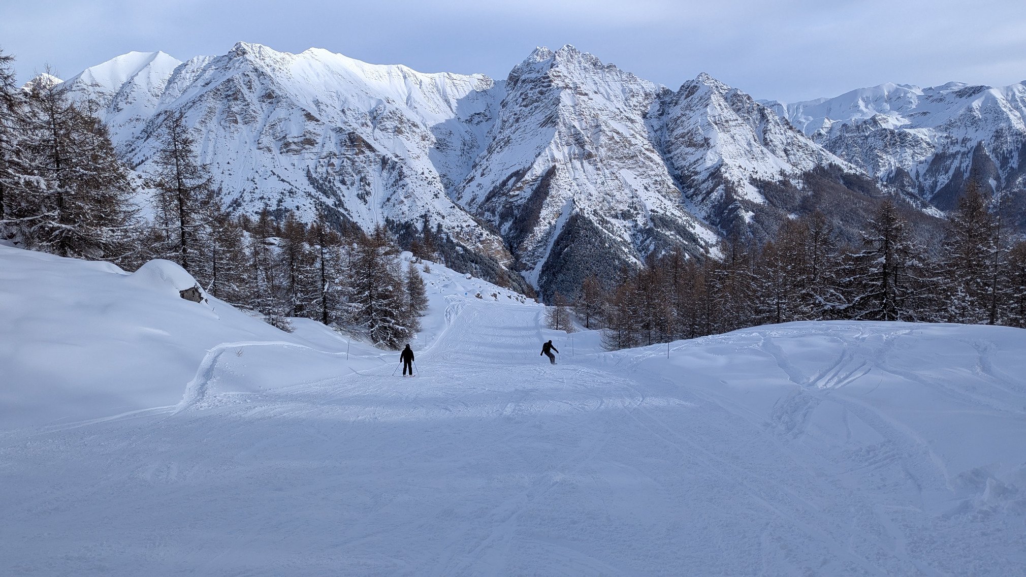Pour ma découverte de Reallon : neige fraîche et soleil. Sérieusement ? J'en demandais pas autant ! Bon malheureusement pour des raisons de logistique j'ai du faire de la poudre avec mes ski de slalom. Les gros étant resté dans le 06.