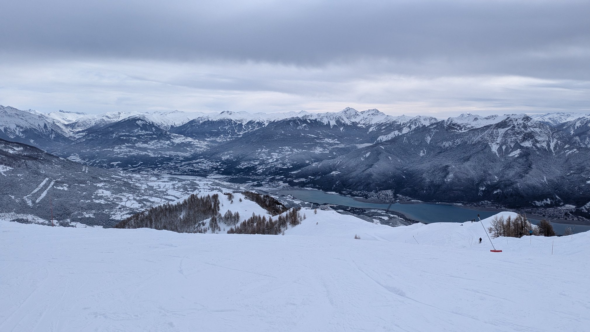 Neige exceptionnelle. C'était vraiment très bon. Une vue de dingue sur la vallée de la Durance. Pas mal de monde. J'entendais un conducteur de télésiège dire que c'était pas souvent comme ça.