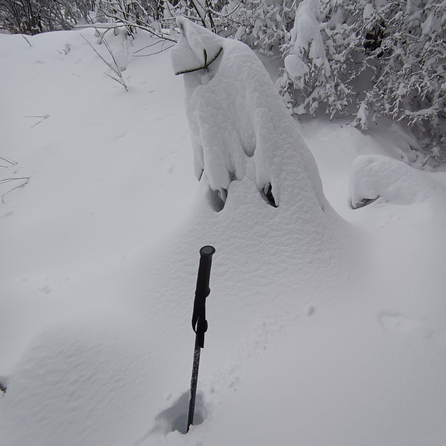 il était tombé 25 de neige froide vendredi dernier, puis tout a disparu lundi avec 50 de pluie, pour finalement revenir hier mardi, la montagne ayant joué à quitte ou double et nous laissant 50 de plâtre