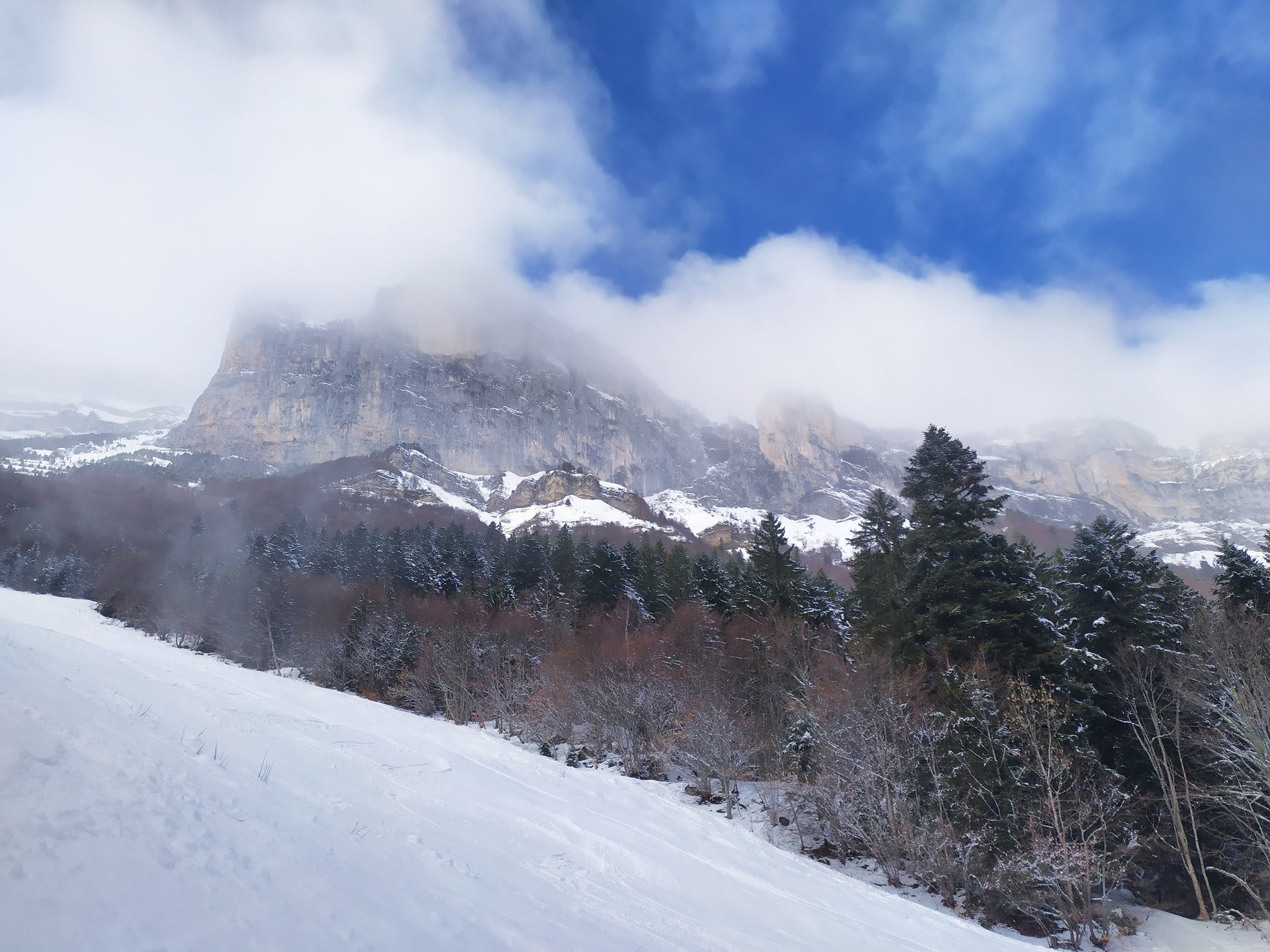 -de mon coté je profite aussi d alternance d eclaircies. Les nuages sont epais par moment. pas de vent, 6 voitures sur le parking. 3 randonneurs devant moi, 3 derrière. une belle contemplation de ces contreforts de Chartreuse, avec le cuicui des oiseaux, on se croirait au printemps